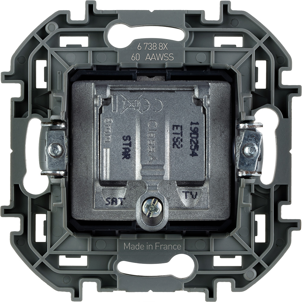 - Присоединение коаксиального кабеля к розетке осуществляется удобным безвинтовым коннектором.