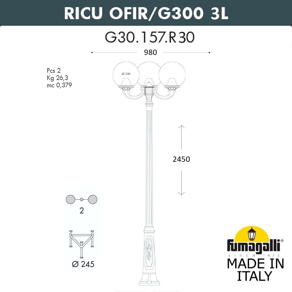 Садово-парковый фонарь FUMAGALLI RICU OFIR/G300 3L G30.157.R30.AYF1R