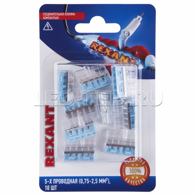 —Соединительная клемма компактная 5-х проводная (0,75-2,5 мм²) (10шт.) REXANT