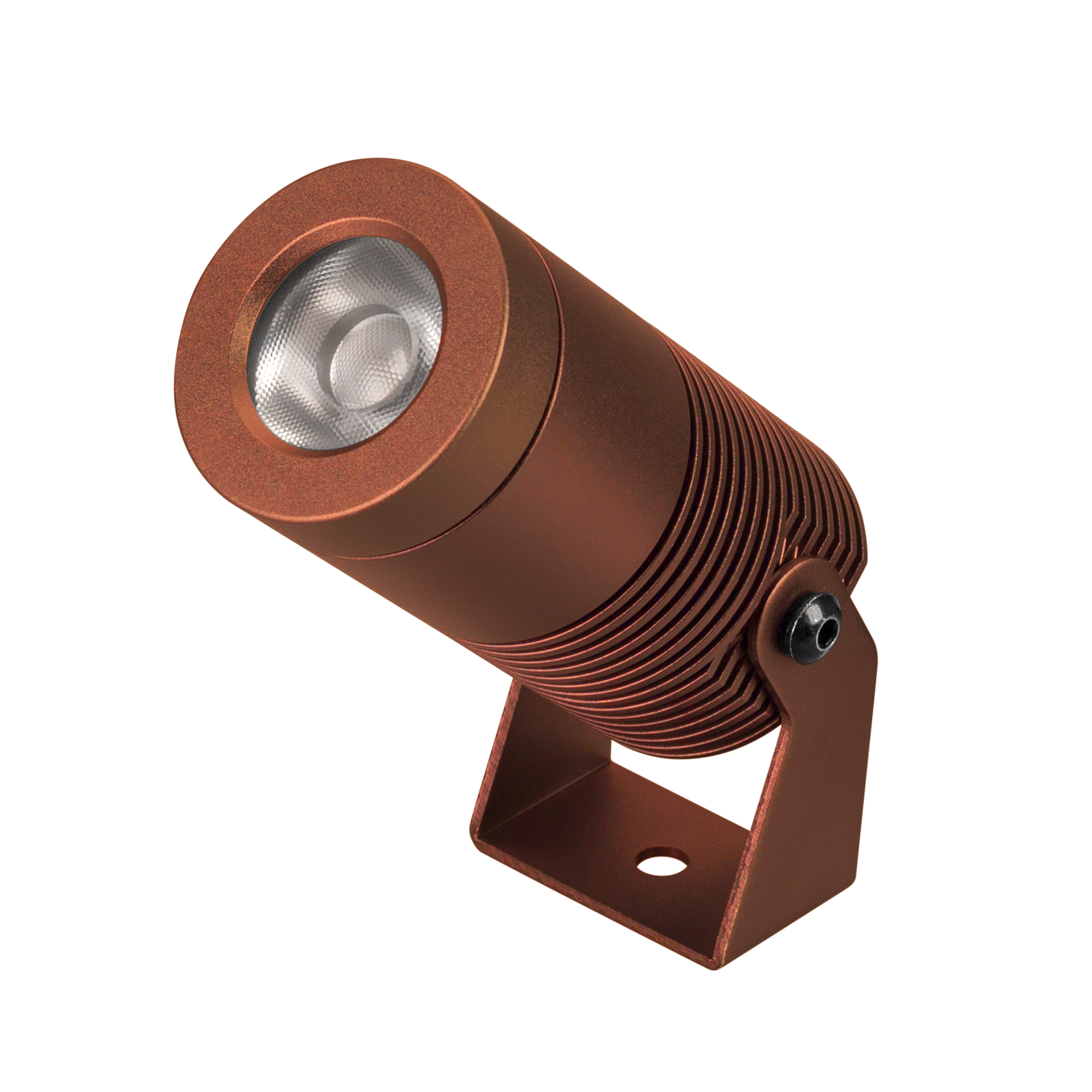 Уличный светодиодный прожектор, мощность 8Вт, угол освещения 33°. Цвет ДНЕВНОЙ 4000К, световой поток 610лм. Влагозащищенный корпус IP67 - цвет кортен - алюминий, экран из закалённого стекла. Угол поворота корпуса в вертикальной плоскости 135°. Питание 230В, мощность 8 Вт.  led-ted.ru размеры DxH -Ø44х90мм. В комплекте 1м провод.