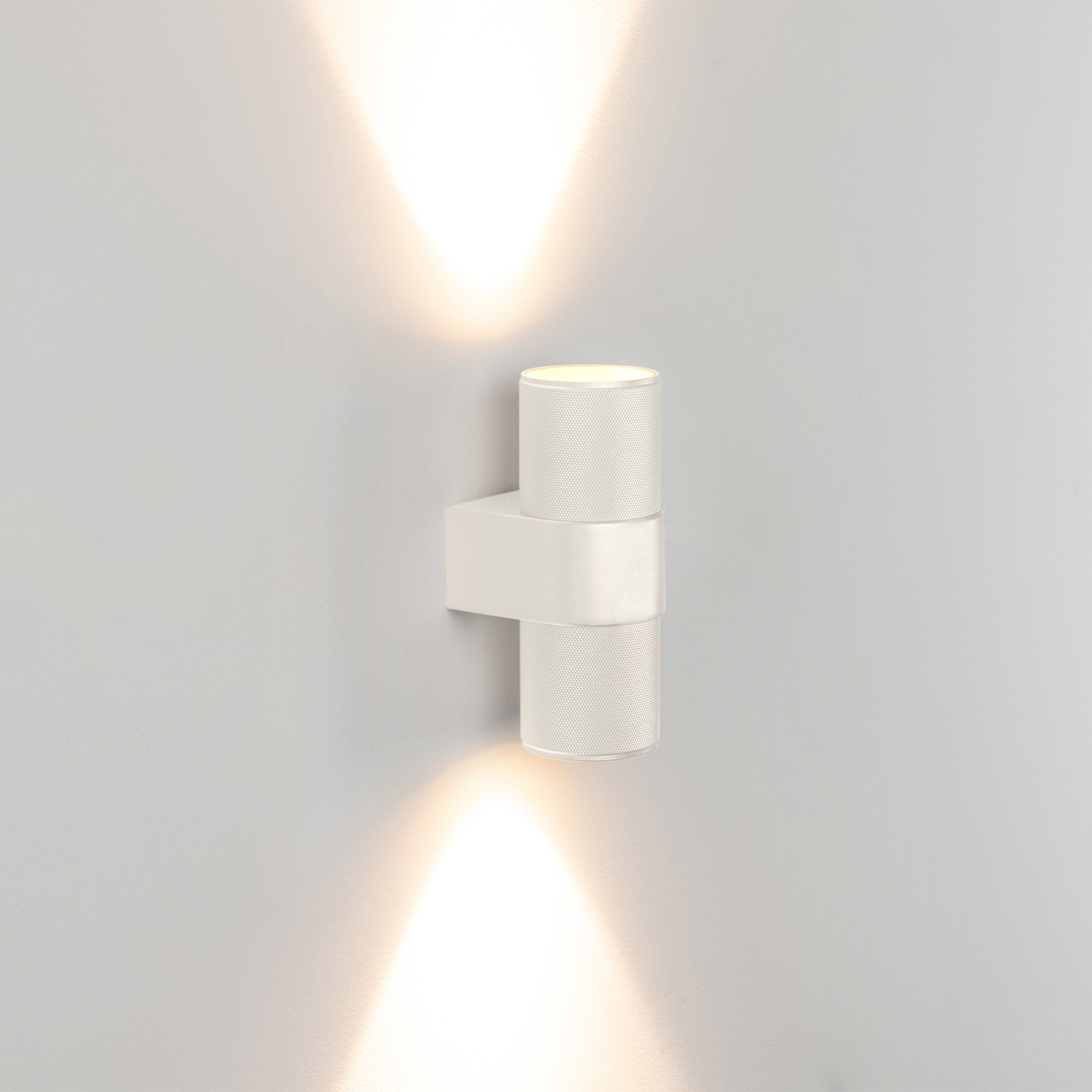 Настенный светильник со свечением в верхнюю и нижнюю полусферу. Мощность 6x2 Вт, св. поток 900 лм, 68 лм/Вт, теплый 3000 K, CRI>90, угол 40°, напряжение питания 230 В. Белый фигурный корпус из алюминия, степень защиты IP20. Размер: длина 110 мм, ширина 72 мм, высота 180 мм. Монтаж накладной. Драйвер 27-42 В, 300 мА, пульсация <1%.
