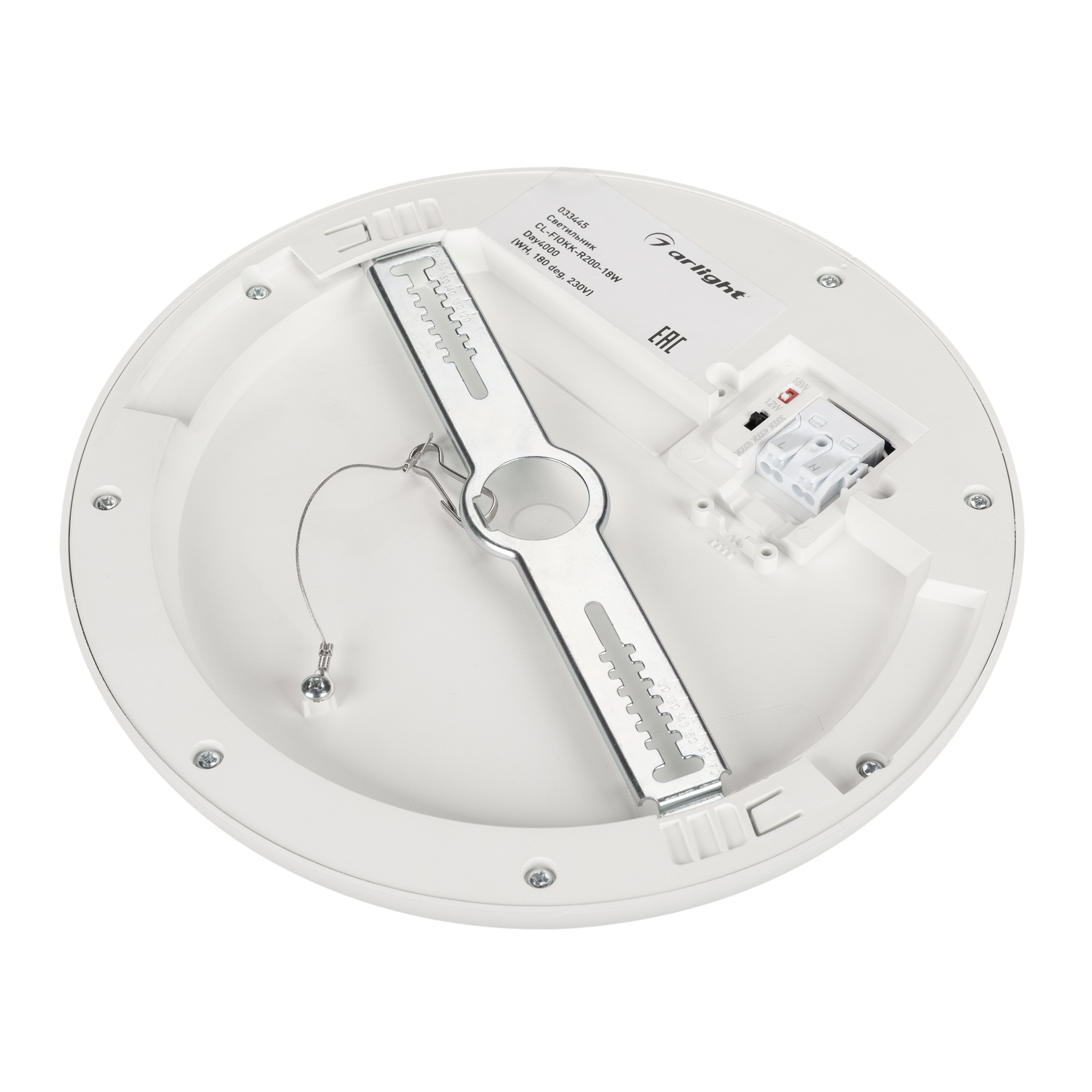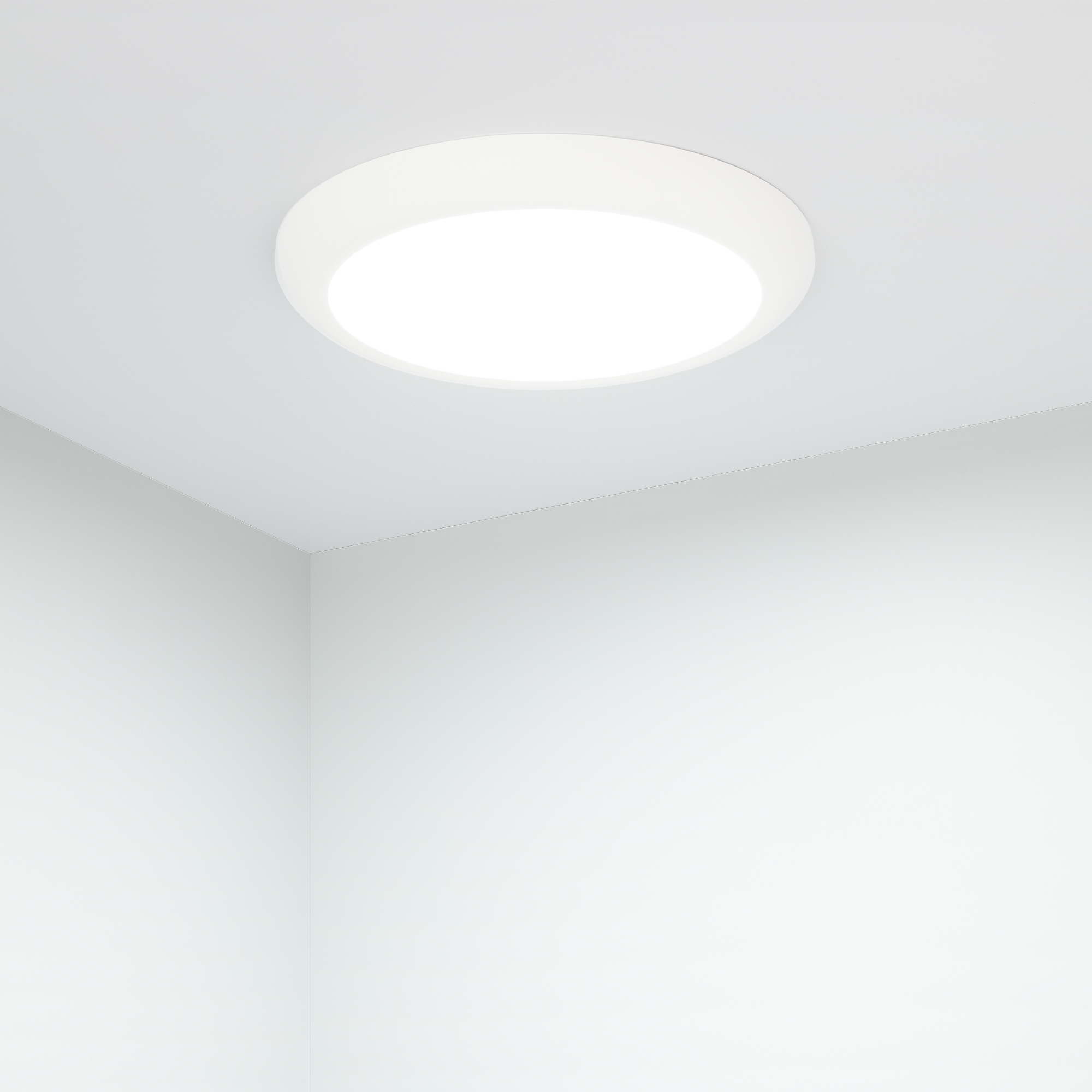 Накладной/встраиваемый светильник с изменяемой мощностью и цветовой температурой. Мощность 12-18 Вт, св. поток 1000-1700 лм, 75-90 лм/Вт, теплый 3000 K, дневной 4000K, белый 6000K, CRI>80, угол 120°, напряжение питания 230 В. Белый круглый корпус из пластика, экран поликарбонат, степень защиты IP44. Размер: диаметр 220 мм, высота 21,5 мм. Монтаж накладной/встраиваемый, установочное отверстие: диаметр 120-200 мм (регулируемое). Драйвер встроенный, пульсация <1%. Комплект крепежа для встраиваемого монтажа поставляется отдельно.