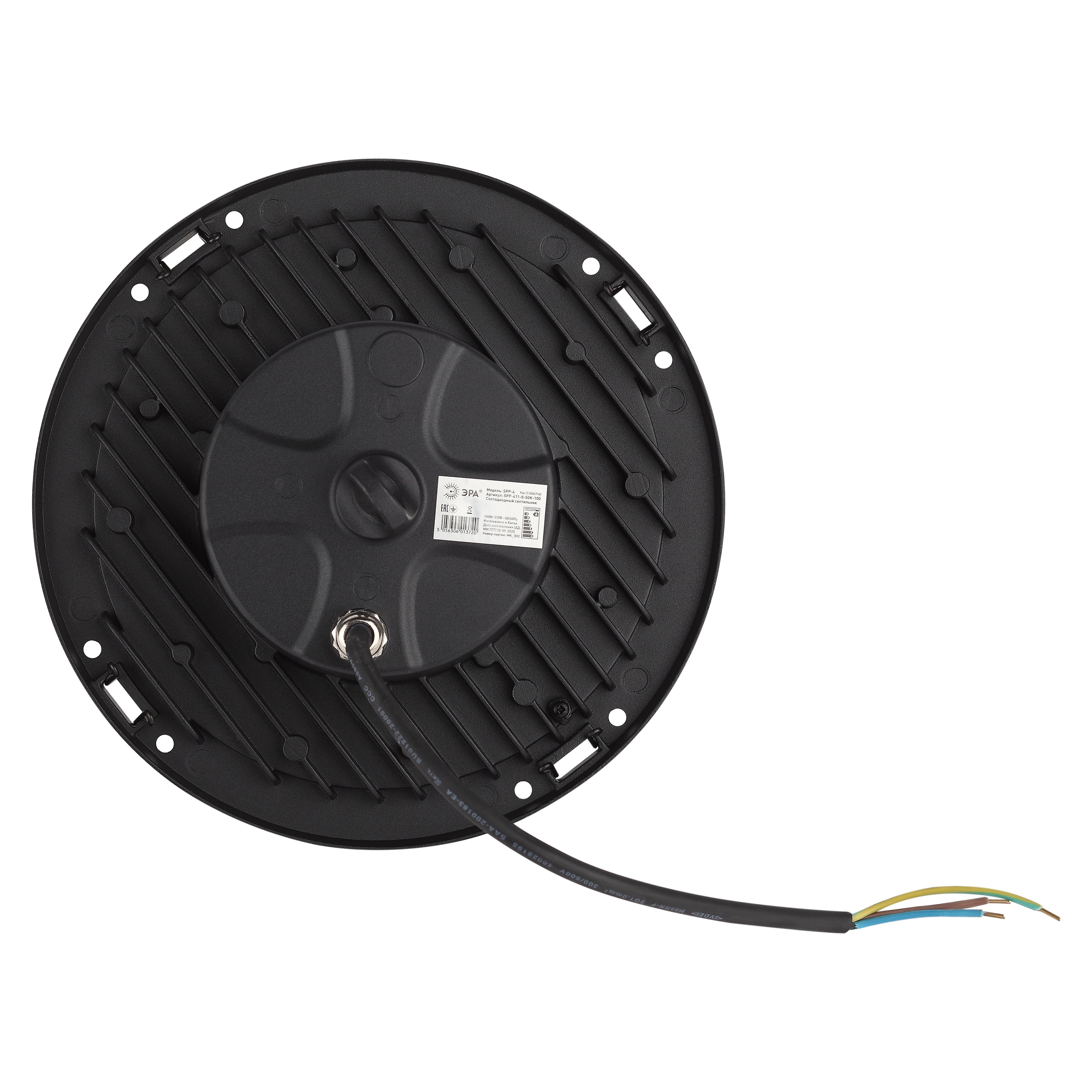 Светильники для высоких пролетов cветодиодный подвесной SPP-411-0-50K-100 IP65 100Вт 12000Лм 5000К Кп<5% КСС Д IC Светильник светодиодный высокомощный. Тип светильника: Замена ГСП, ЖСП, СДГ. Область применения: Предназначен для общего освещения складских и производственных помещений, в т.ч. открытых пандусов, торговых и выставочных павильонов, гипермаркетов, спортивных сооружений и т.п.. Преимущества: Коэффициент пульсации <5% - допустимо к применению в заводских цехах; 120Лм/Вт соответствует требованиям Постановления Правительства №1356. Потребляемая мощность, Вт: 100. Световой поток, Лм: 12 000. Светоодача, Лм/Вт: 120. Цветовая температура, К: 5000K. Индекс цветопередачи, Ra: Ra>80. Степень защиты от воздействия окружающей среды, IP: IP65. Климатическое исполнение: У1. Диапазон рабочих температур: (-45+40). Тип кривой силы света: Д (120). Коэффициент мощности, PF: >0,95. Коэффициент пульсации светового потока, %: <5%. Материал рассеивателя: закаленное стекло. Материал корпуса: Алюминий. Цвет корпуса: черный. Габариты, мм: 230х88. Питающее напряжение, В: 120-265. Гарантия: 3 года.
