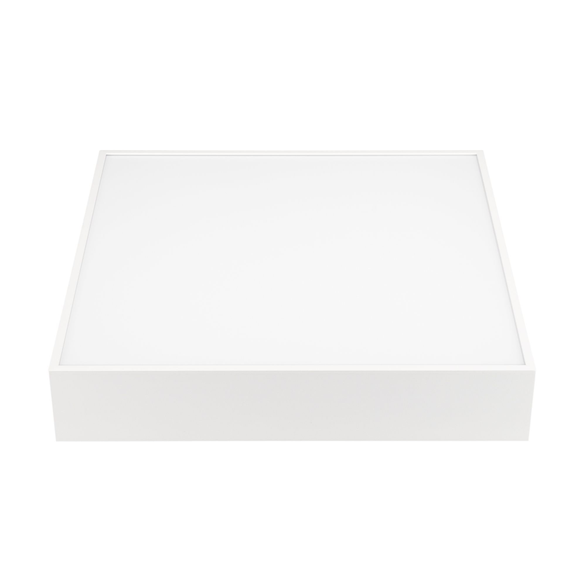 Светодиодный светильник с блоком аварийного питания. Мощность полная 33 Вт, мощность в режиме заряда и контроля АКБ 2.5 Вт, св. поток 2000-2540 лм, 85 лм/Вт, световой поток в аварийном режиме 202 лм, дневной 4000 K, CRI>90, угол 120°, напряжение питания 230 В. Белый квадратный корпус из алюминия, экран PC, степень защиты IP40. Размер: длина 350 мм, ширина 350 мм, высота 64 мм. Монтаж накладной. Драйвер 27-42 В, 800 мА, пульсация <5%. Тип батареи: Li-ion, напряжение батареи 3.7 В, емкость батареи 2600 мАч, время работы в автономном режиме: до 3 ч.