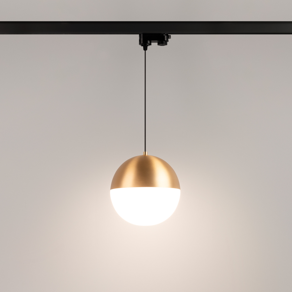 Светильник подвесной для треков/шин 4 провода. Мощность 16 Вт, св. поток 1120 лм, 70 лм/Вт, дневной 4000 K, CRI>90, угол 180°, напряжение питания 230 В. Золотой корпус из алюминия, материал плафона стекло, степень защиты IP20. Размер: диаметр 200 мм, длина подвеса 1500 мм. Монтаж на трек 3-фазный. Драйвер 28-40 В, 400 мА, пульсация <1%. led-ted.ru