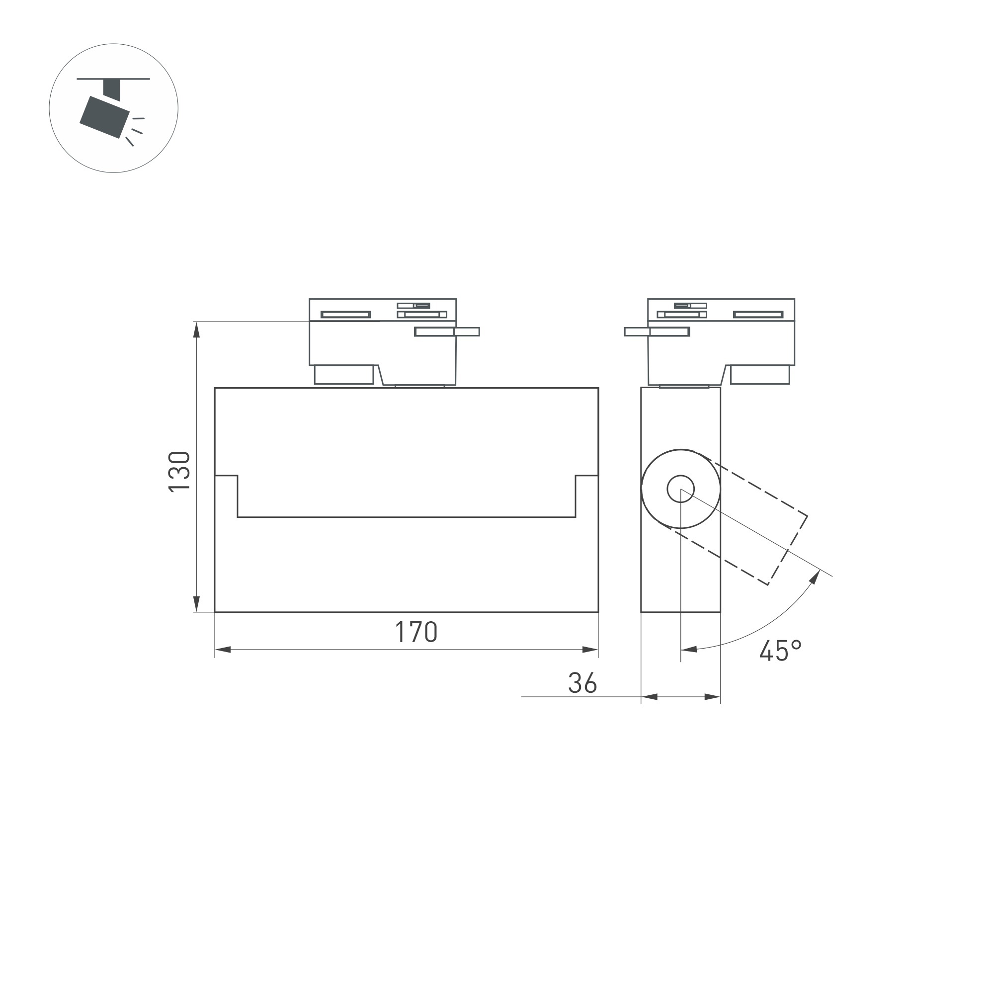 Светильник подвесной для треков/шин 2 провода с управлением. Мощность 10 Вт, св. поток 540-600 лм, 55 лм/Вт, дневной 4000 K, CRI>90, угол 24°, напряжение питания 230 В. Белый квадратный корпус из алюминия, степень защиты IP20. Размер: длина 170 мм, высота 130 мм, ширина 36 мм. Монтаж на трек 3-фазный. Драйвер 9-42 В, 300 мА, пульсация <5%.