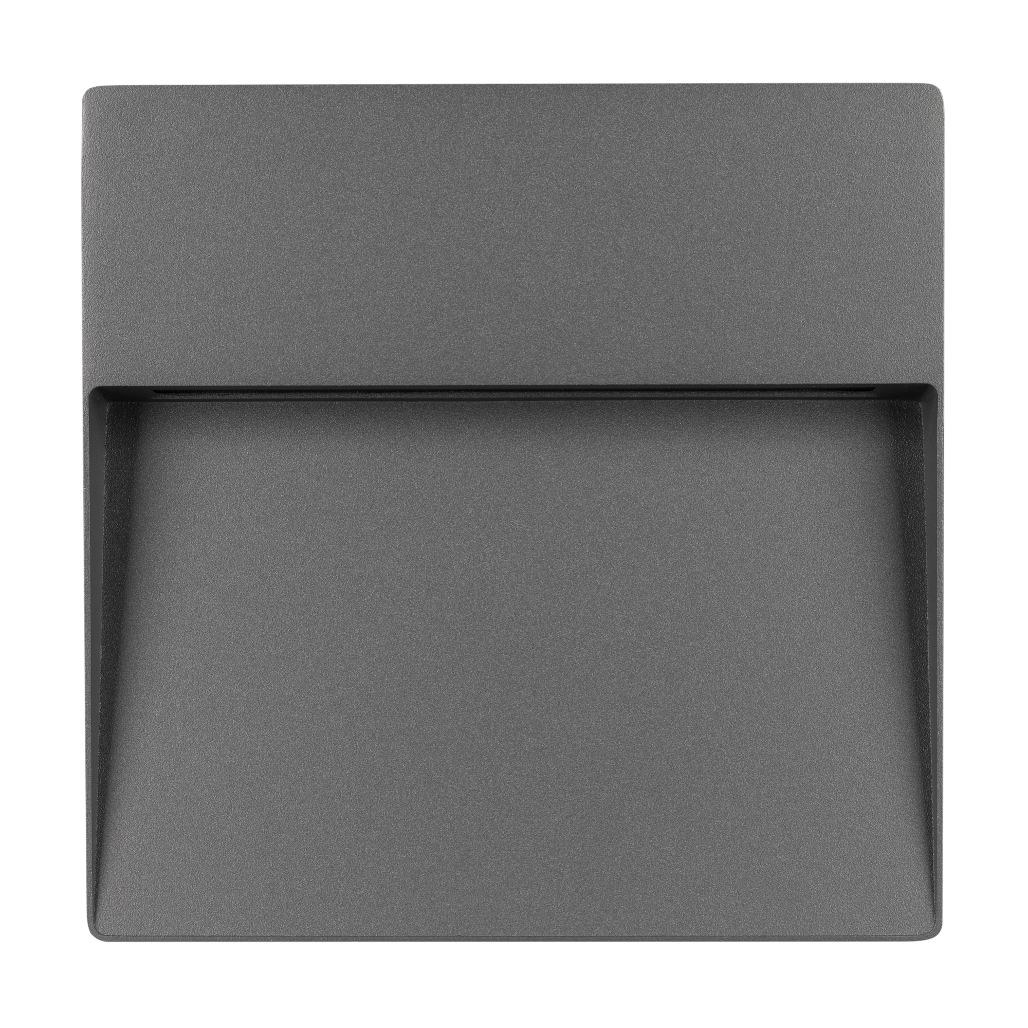 Светодиодный накладной квадратный светильник для стен лестниц 8Вт. Цвет ТЕПЛЫЙ БЕЛЫЙ 3000K св.поток 300лм CRI(Ra)>80 угол 60° асимметричный свет. Размер 215x215x36мм. Влагозащищенный корпус IP65 алюминий серого цвета. Питание AC220-240V 8Вт встроенный драйвер.