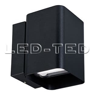 Уличный светодиодный светильник для стен, изменяемый угол освещения 0°-80°, свет вверх-вниз на 2 стороны. Цвет ТЕПЛЫЙ БЕЛЫЙ 3000К, светодиоды 2x6Вт CREE (750 лм). Влагозащищенный корпус IP54 - черный алюминий, экран ударопрочный PC. Питание 220В, мощность 12 Вт. Размеры ВхШхГ -138х104х129 мм.