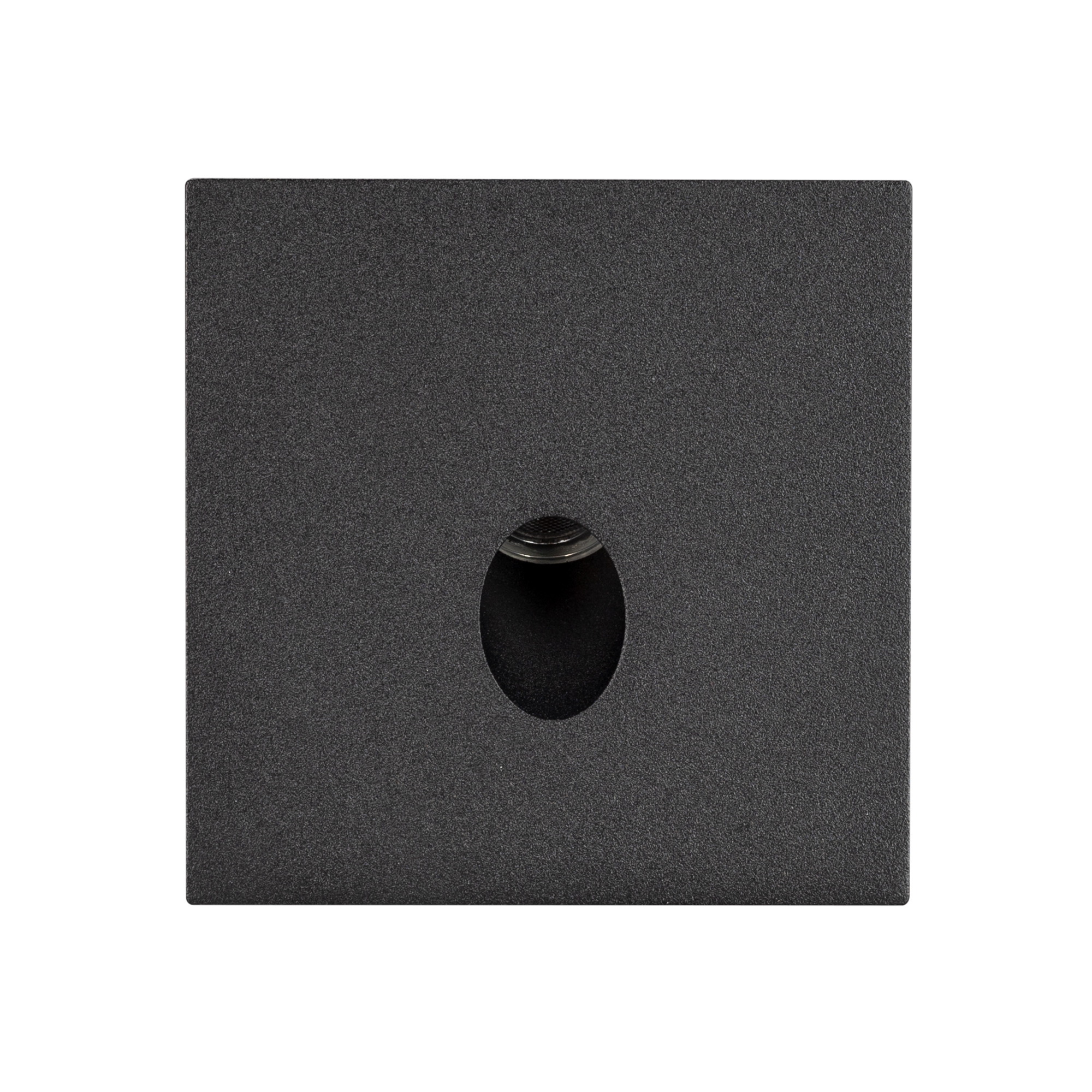 Светодиодный встраиваемый квадратный светильник для стен, лестниц, 3Вт. Цвет ТЕПЛЫЙ 3000К, световой поток 121лм, угол 30°, CRI>80. Влагозащищенный корпус IP65, чёрный алюминий. Питание AC230V, мощность 3Вт. Размеры LxWxH 70x70x97мм (закладная часть ?62x95мм).