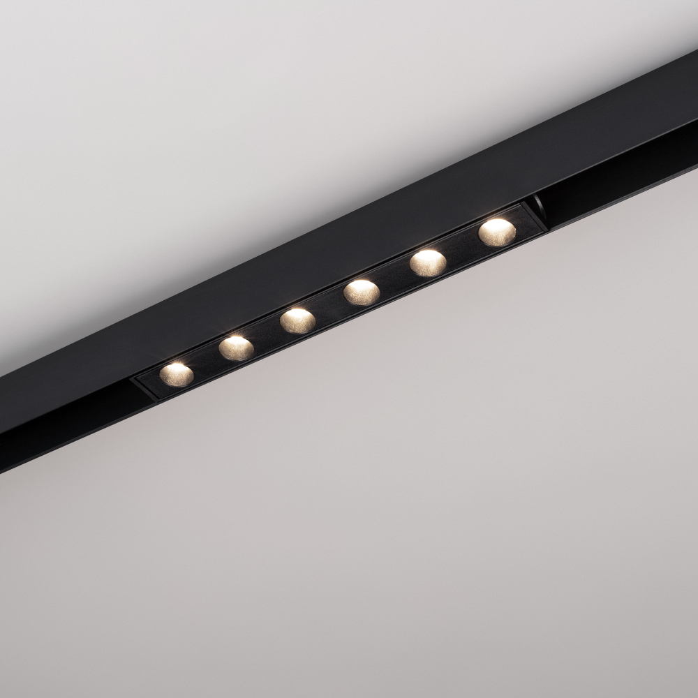 Светильник для магнитных треков шириной 25 мм, 6 Вт. Цвет свечения ДНЕВНОЙ 4000K, световой поток 400лм, угол 30°, CRI>90. Корпус прямоугольный, металл, цвет черный, IP20. Размеры LxWxH 204x20x25 мм. Входное напряжение DC24V, мощность 6 Вт. Драйвер DС24V/AC230V поставляется отдельно.
