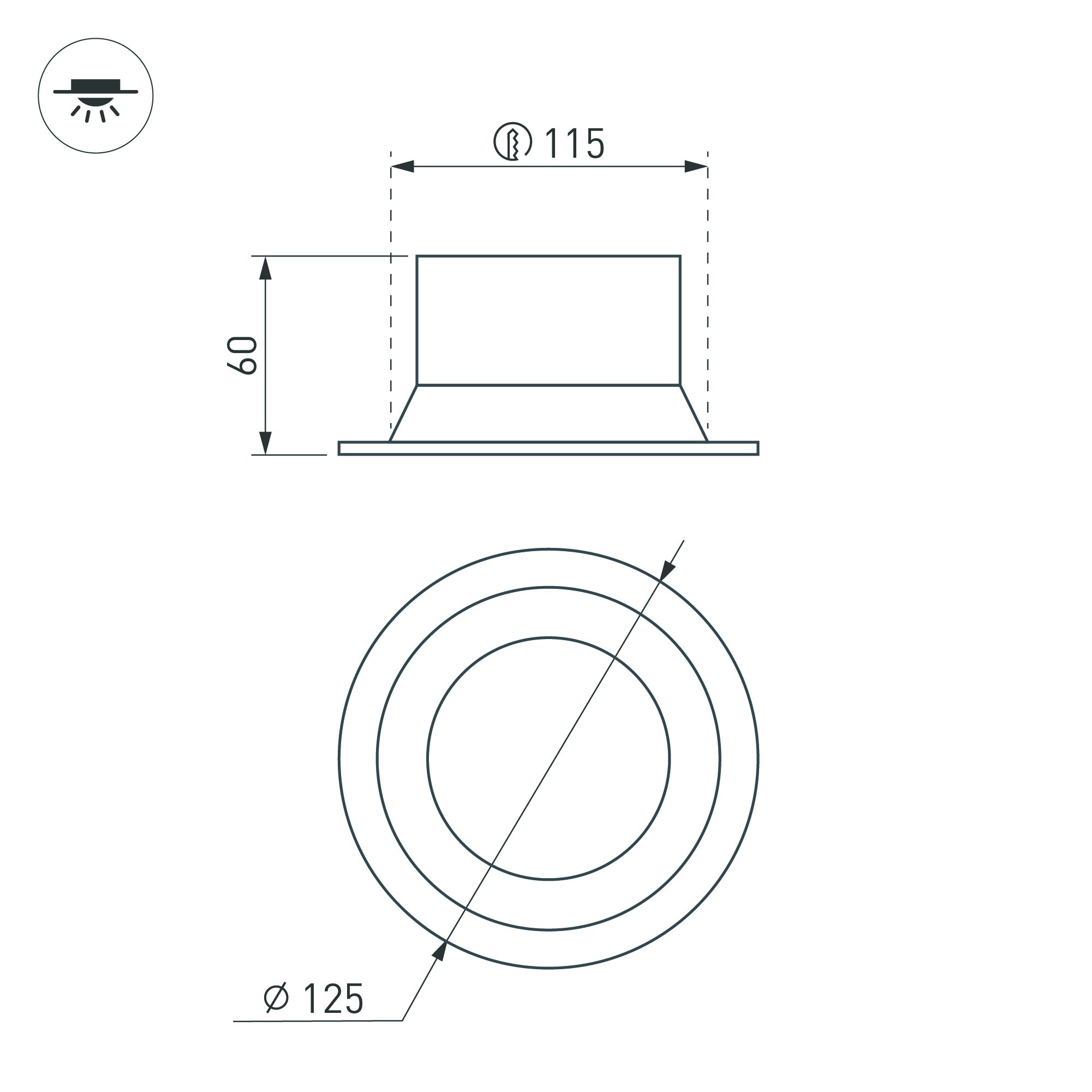 Встраиваемый светильник даунлайт. Мощность 16 Вт, св. поток 1220 лм, 76 лм/Вт, дневной 4000 K, CRI>90, угол 90°, напряжение питания 230 В. Белый круглый корпус из алюминия, степень защиты IP20. Размер: диаметр 125 мм, высота 60 мм. Монтаж встраиваемый, установочное отверстие: диаметр 115 мм. Драйвер 27-42 В, 400 мА, пульсация <2%.