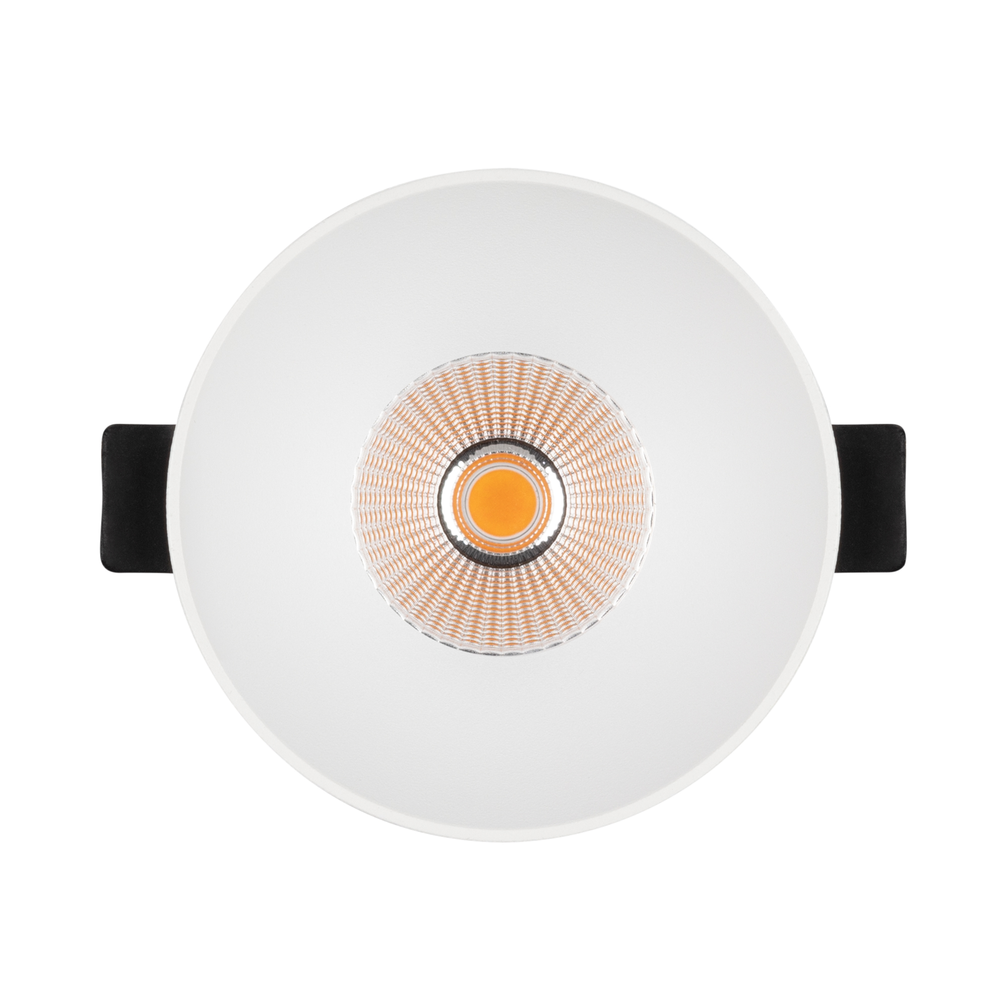 Встраиваемый светильник даунлайт. Мощность 6 Вт, св. поток 560 лм, 93 лм/Вт, дневной 4000 K, CRI>90, UGR<16, угол 38°, напряжение питания 230 В. Белый круглый корпус из алюминия, степень защиты IP20. Размер: диаметр 65 мм, высота 69 мм. Монтаж встраиваемый, установочное отверстие: диаметр 60 мм. Драйвер 28-42 В, 150 мА, пульсация <2%.