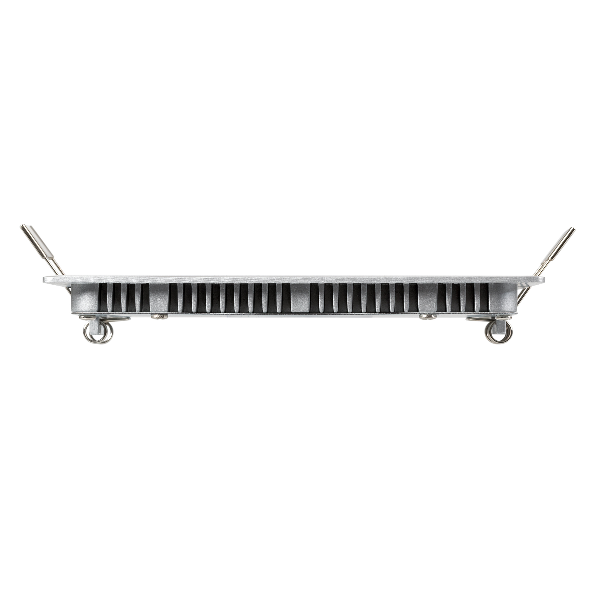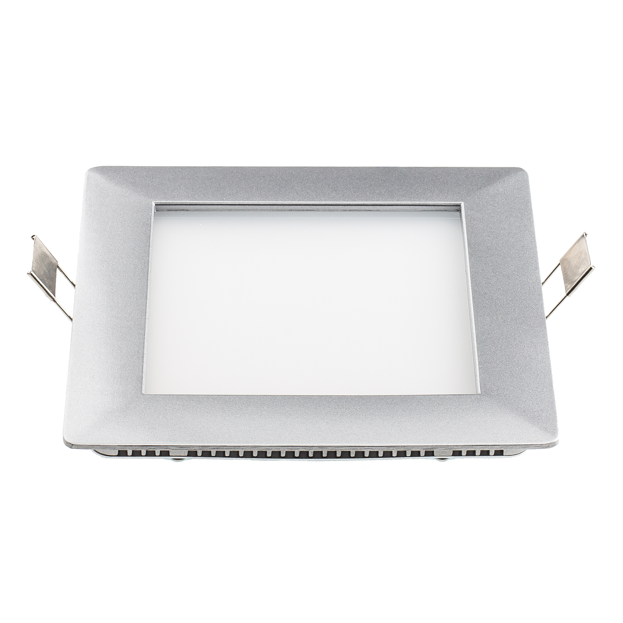 12Вт / ДНЕВНОЙ 4000K / 650-850лм / 120°. Размер 160x160x14мм (в отверстие 150x150мм). SMD2835 54pcs. Корпус квадратный объёмный, серебристый. Питание от сети 220VAC, драйвер в комлекте.