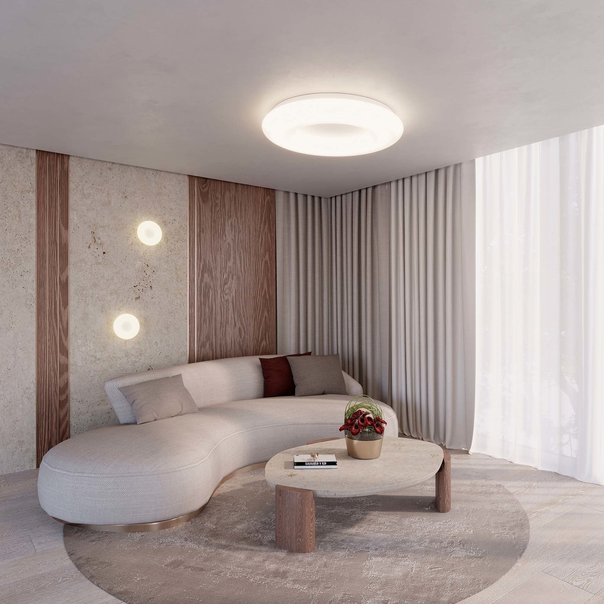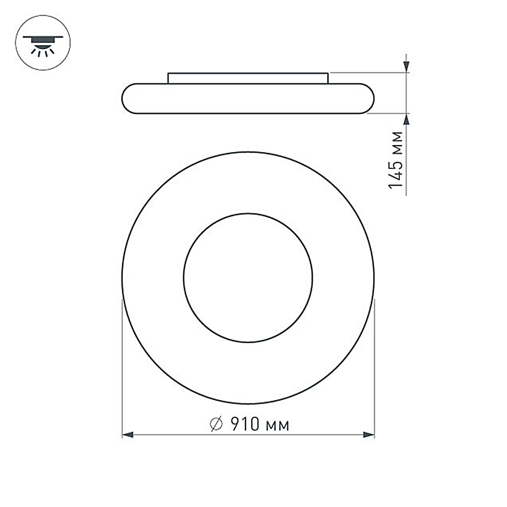 Накладной светильник 120Вт, белый круглый корпус. Цвет ТЕПЛЫЙ БЕЛЫЙ 3000K, св.поток 10580лм, CRI(Ra)>80, угол 140°. Размер Ф910x145мм. Питание AC220-240V, 120Вт, драйвер встроенный.