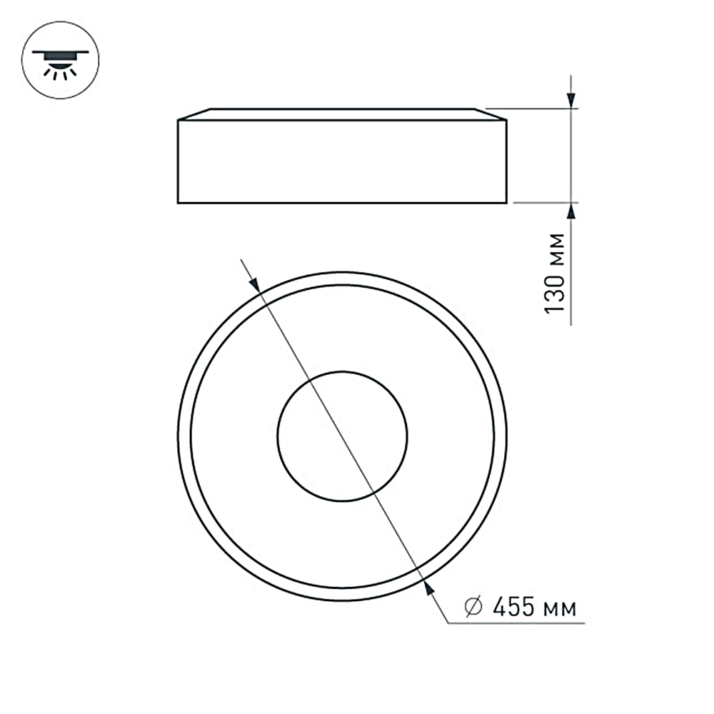Накладной светильник 33Вт, белый круглый корпус. Цвет ТЕПЛЫЙ БЕЛЫЙ 3000K, св.поток 2970лм, CRI(Ra)>80, угол 120°. Размер Ф455x130мм. Питание AC220-240V, 33Вт, драйвер встроенный ((30-42V, 750mA).