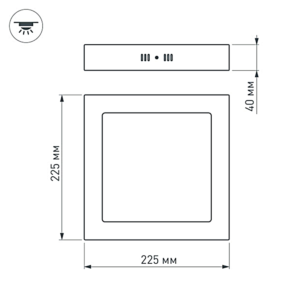 Накладная квадратная панель 18Вт, цвет ДНЕВНОЙ БЕЛЫЙ 4000K / 1500 лм / 120°/ CRI(Ra)>80. Размер 225 х 225 x 40мм. Корпус алюминиевый белый. Питание от сети AC 100-240V, драйвер в комплекте (019546, 45-58V, 300mA).