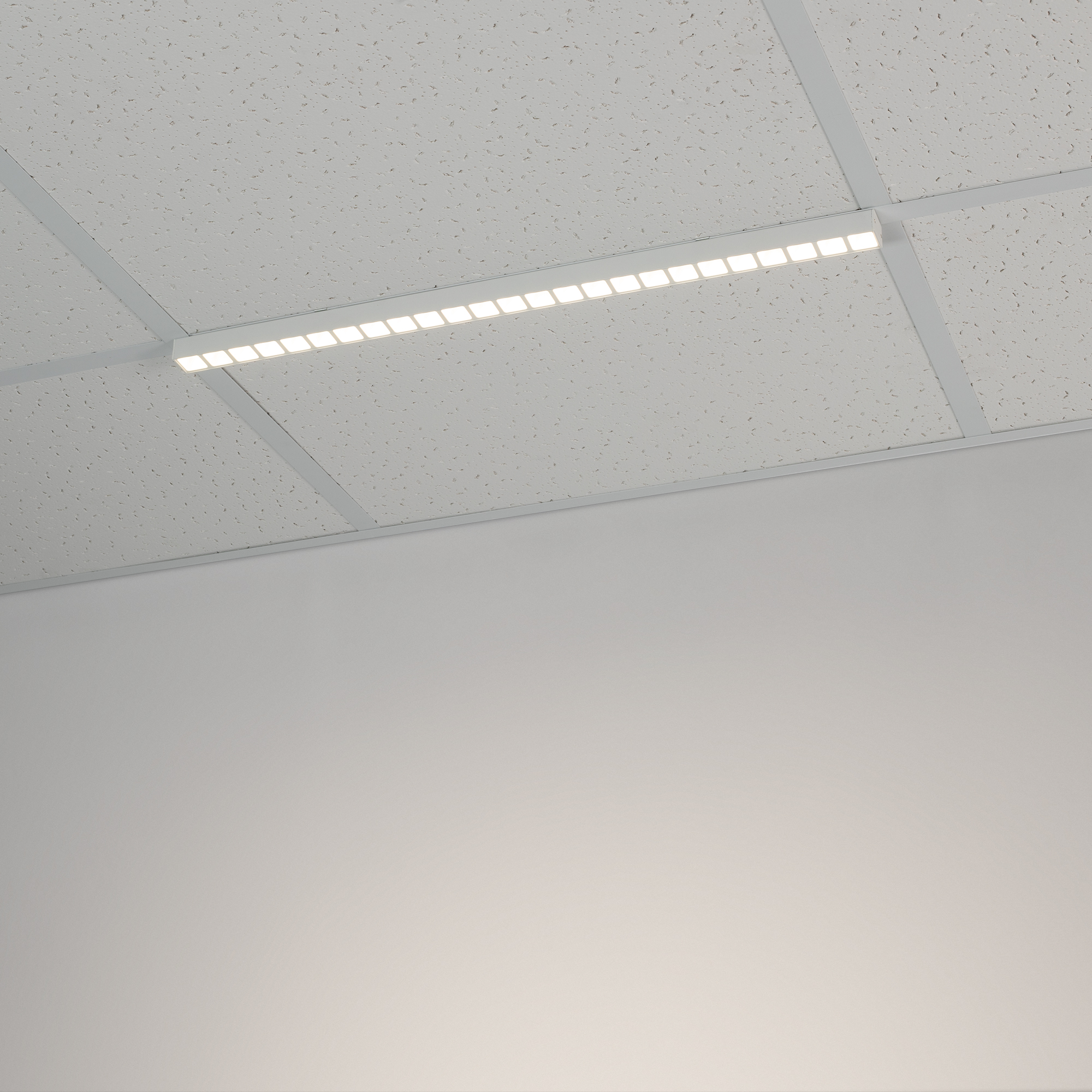 Светодиодный светильник для направляющих потолка Армстронг шириной 15 и 24 мм. Мощность 26 Вт, св. поток 2900 лм, 115 лм/Вт, дневной 4000K, CRI>80, угол 80°, напряжение питания 48 В. Белый квадратный корпус из алюминия, экран PC, степень защиты IP40. Размер: длина 1200 мм, ширина 25 мм, высота 28 мм. Монтаж накладной. Драйвер поставляетя отдельно.