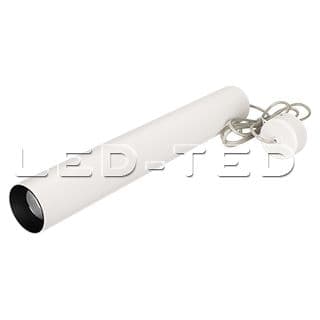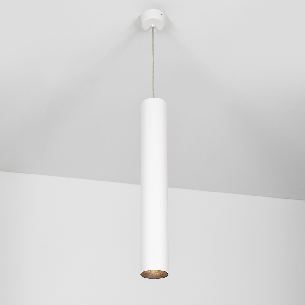 Подвесной светильник 8Вт, белый круглый корпус, черная вставка, металл. Цвет свечения БЕЛЫЙ ТЕПЛЫЙ 3000K, св.поток 570лм, CRI(Ra)>80, угол 40°. Размер ?65x450мм, встроенный драйвер PRI:220-240VAC, SEC:DC 200mA 30-43V 8Вт.