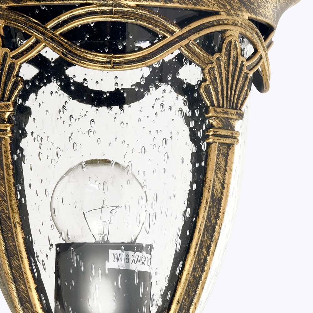 Светильник садово-парковый, серии «Будапешт», (НБУ) PL682 60W, E27, 230V, IP44, цвет черное золото, на стену вверх, 250*180*370мм