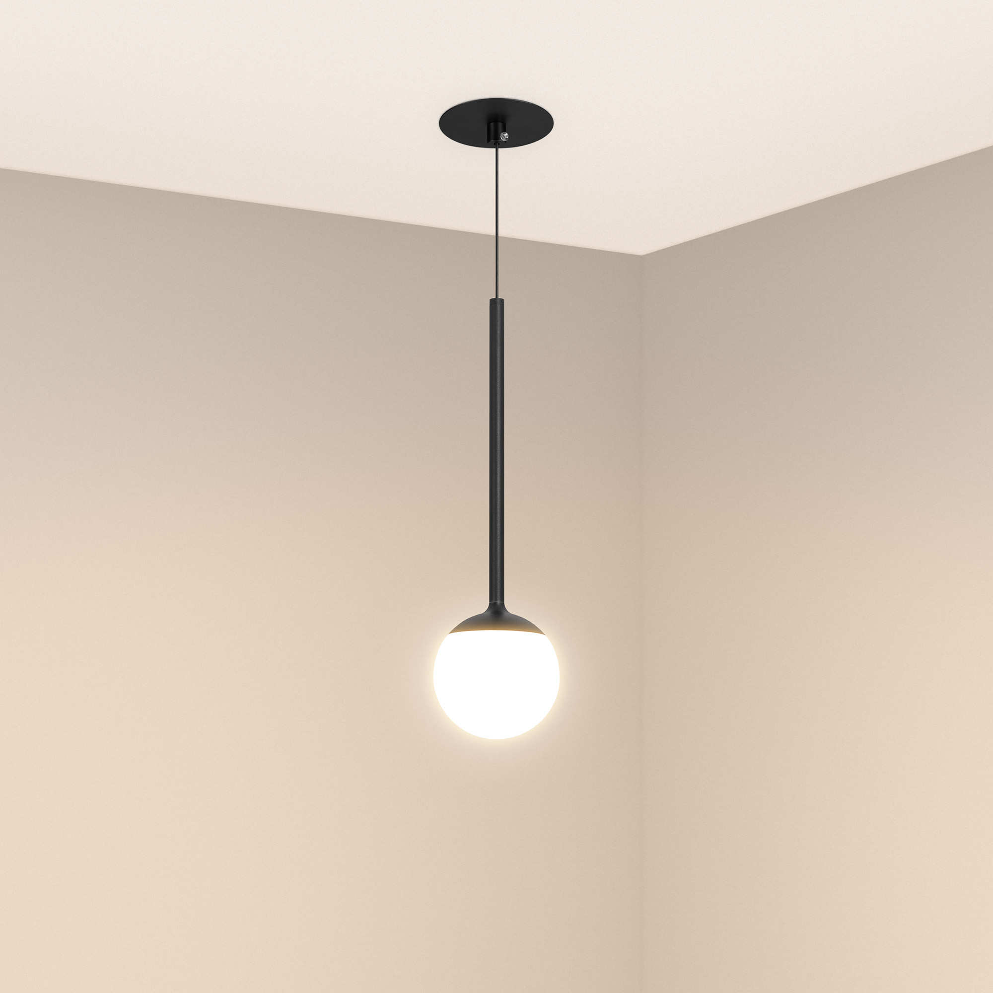 Встраиваемый подвесной светильник. Мощность 8 Вт, св. поток 620 лм, 80 лм/Вт, теплый 3000 K, CRI>90, угол 180°, напряжение питания 230 В. Черный круглый корпус из алюминия и стали, рассеиватель акрил, степень защиты IP20. led-ted.ru Размер: диаметр 100 мм, высота ножки 244 мм, длина подвеса 1150 мм. led-ted.ru Размеры чаши Ø 92x50 мм, led-ted.ru Размер врезного отверстия Ø 82 мм. Диаметр провода Ø 4 мм. Монтаж встраиваемый. Драйвер 13-24 В, 300 мА, пульсация <1%.