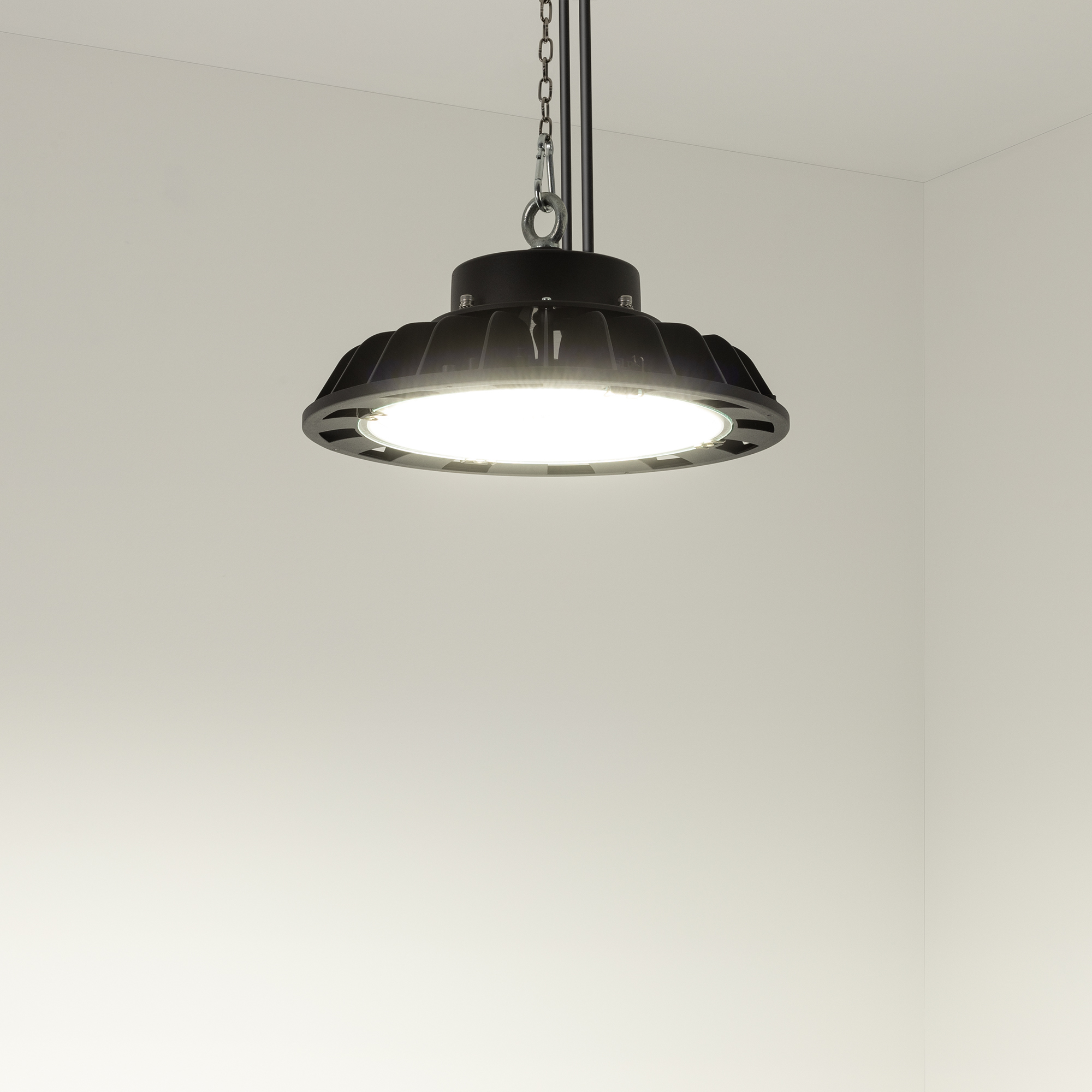 Светильник для освещения складских и промышленных помещений. Мощность 80W, напряжение питания AC 220-240V/50Hz.CRI 80. Тип светодиодов SMD2835, с групповой оптической линзой. Цвет свечения ДНЕВНОЙ 5000K, световой поток 12800 Lm, угол рассеивания 90°. Цвет корпуса серый, линза из поликарбоната, степень влагозащиты IP65. Диаметр 295мм. Рым-болт в комплекте.