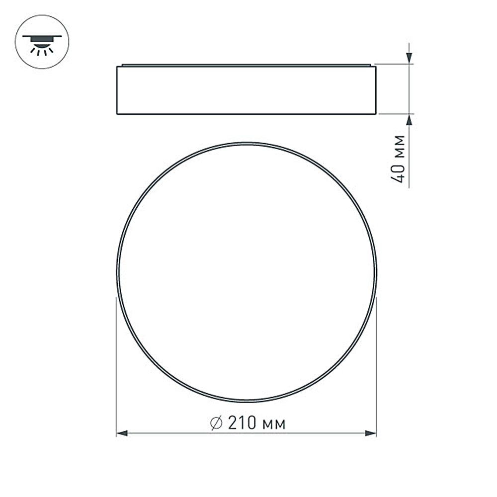 Накладной светильник. Мощность 20 Вт, св. поток 1600-1800 лм, 80-90 лм/Вт, теплый 3000 K, CRI>90, угол 100°, напряжение питания 230 В. Черный круглый корпус из алюминия, экран PC, степень защиты IP40. Размер: диаметр 210 мм, высота 52 мм. Монтаж накладной. Драйвер 27-42 В, 500 мА, пульсация <5%. (2) led-ted.ru