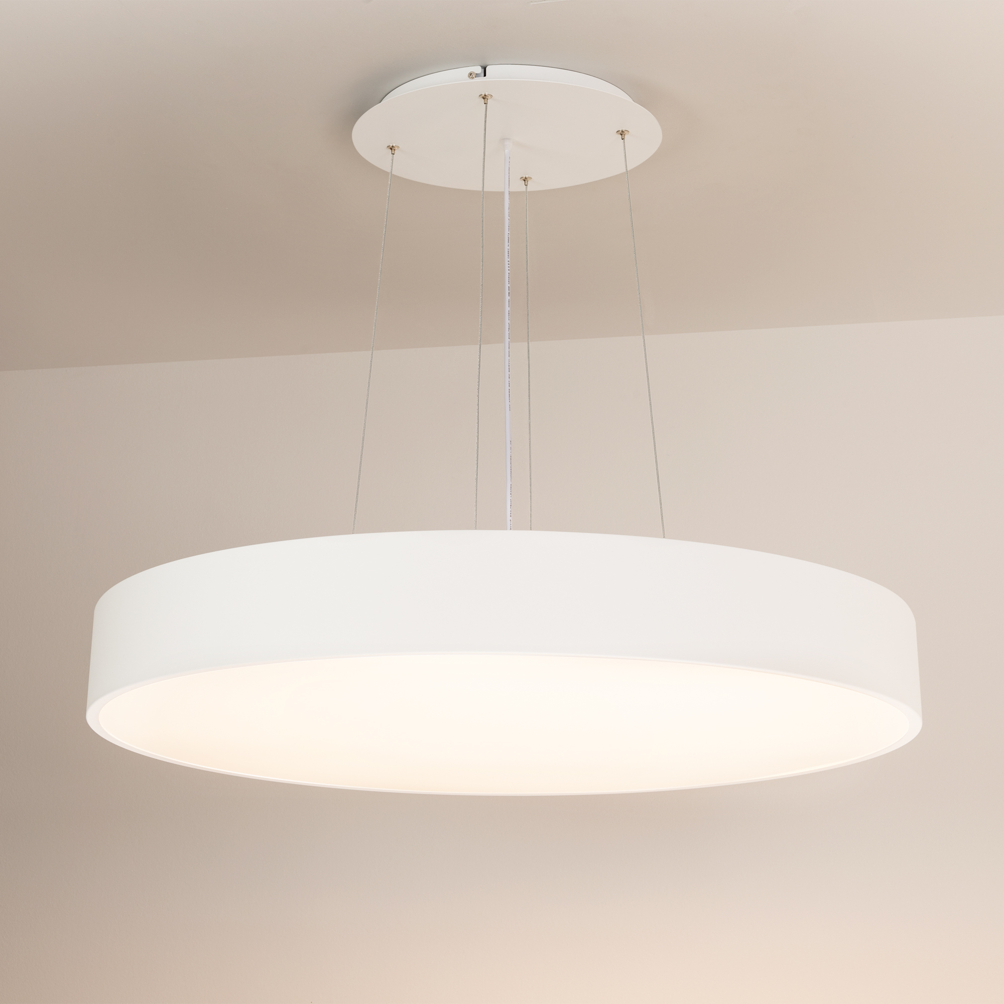 Накладной интерьерный светильник. Мощность 94 Вт, св. поток 8460 лм, 90 лм/Вт, теплый 3000 K, CRI>80, угол 120°, напряжение питания 230 В. Белый круглый корпус из алюминия, степень защиты IP20. Размер: диаметр 800 мм, высота 100 мм. Монтаж накладной. Драйвер 28-42 В, 1200 мА (2 шт.), пульсация <5%. 022132(3) led-ted.ru