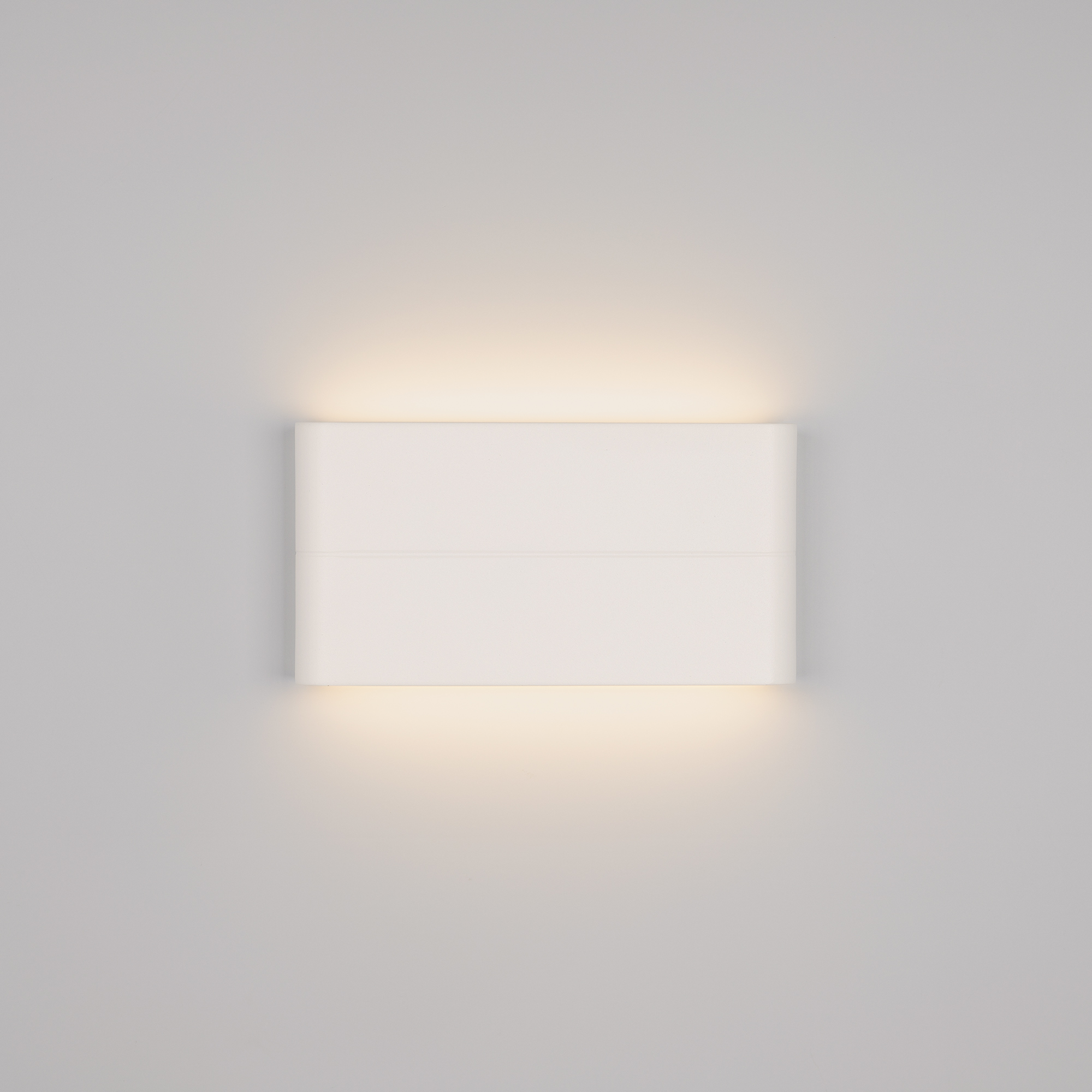 Накладной настенный светильник 2x6Вт, белый алюминиевый корпус, матовый рассеиватель из поликарбоната. Цвет ТЕПЛЫЙ БЕЛЫЙ 2990K, св.поток 950лм, CRI(Ra)>80, угол 120°, свет вверх-вниз. Размер 170x90x28мм. IP54. Питание AC220-240V, 12Вт, встроенный драйвер.