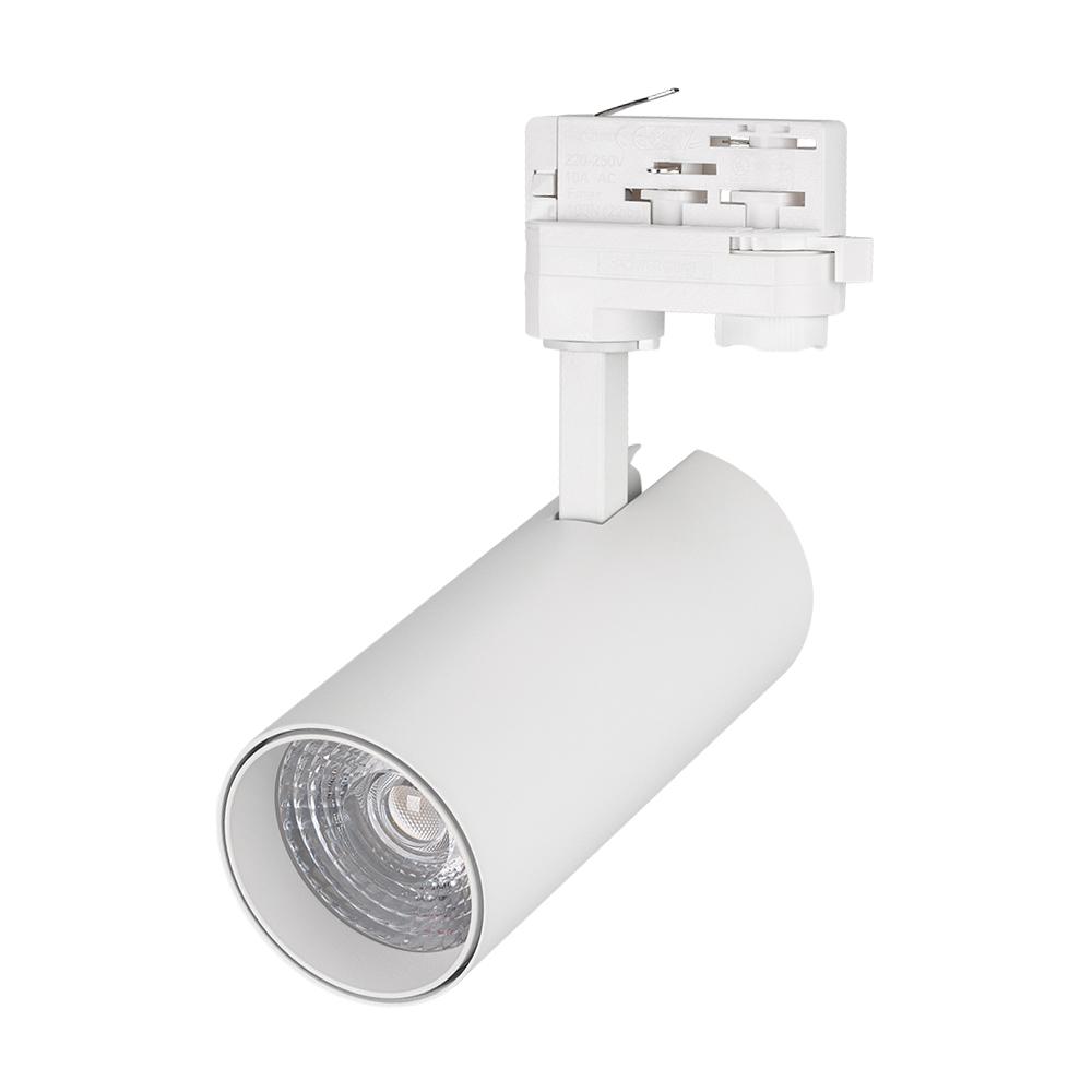 Светильник подвесной для треков/шин 4 провода 20Вт. Цвет свечения ДНЕВНОЙ 4000K световой поток 1800-2200лм угол 24° CRI>90. Корпус круглый металл цвет белый IP20. Размеры DxHxL ?74x160x170мм. Входное напряжение AC220-240V мощность 20Вт. Драйвер встроенный (30-42V 500mA).