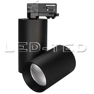 Трековый светильник 15Вт черный круглый корпус черная вставка металл. Цвет свечения БЕЛЫЙ 5000K св.поток 1100лм CRI(Ra)>80 угол 40°. Размер DxL1xL2xW ?85x124x190x175мм встроенный драйвер PRI:100-240VAC SEC:DC 350mA 30-43V 15Вт.