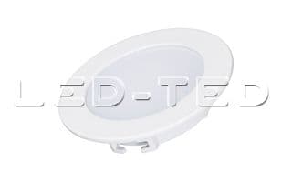 Светодиодная панель 5Вт, корпус IP40 белый, круглый. Цвет ТЕПЛЫЙ БЕЛЫЙ 3000K, св.поток 350-400лм, CRI(Ra)>80, угол 100°. Размер Ф90x22 мм, установка в отверстие 75 мм. Питание AC 180-240V, 5Вт, DC300mA 15...18V, драйвер в комплекте.