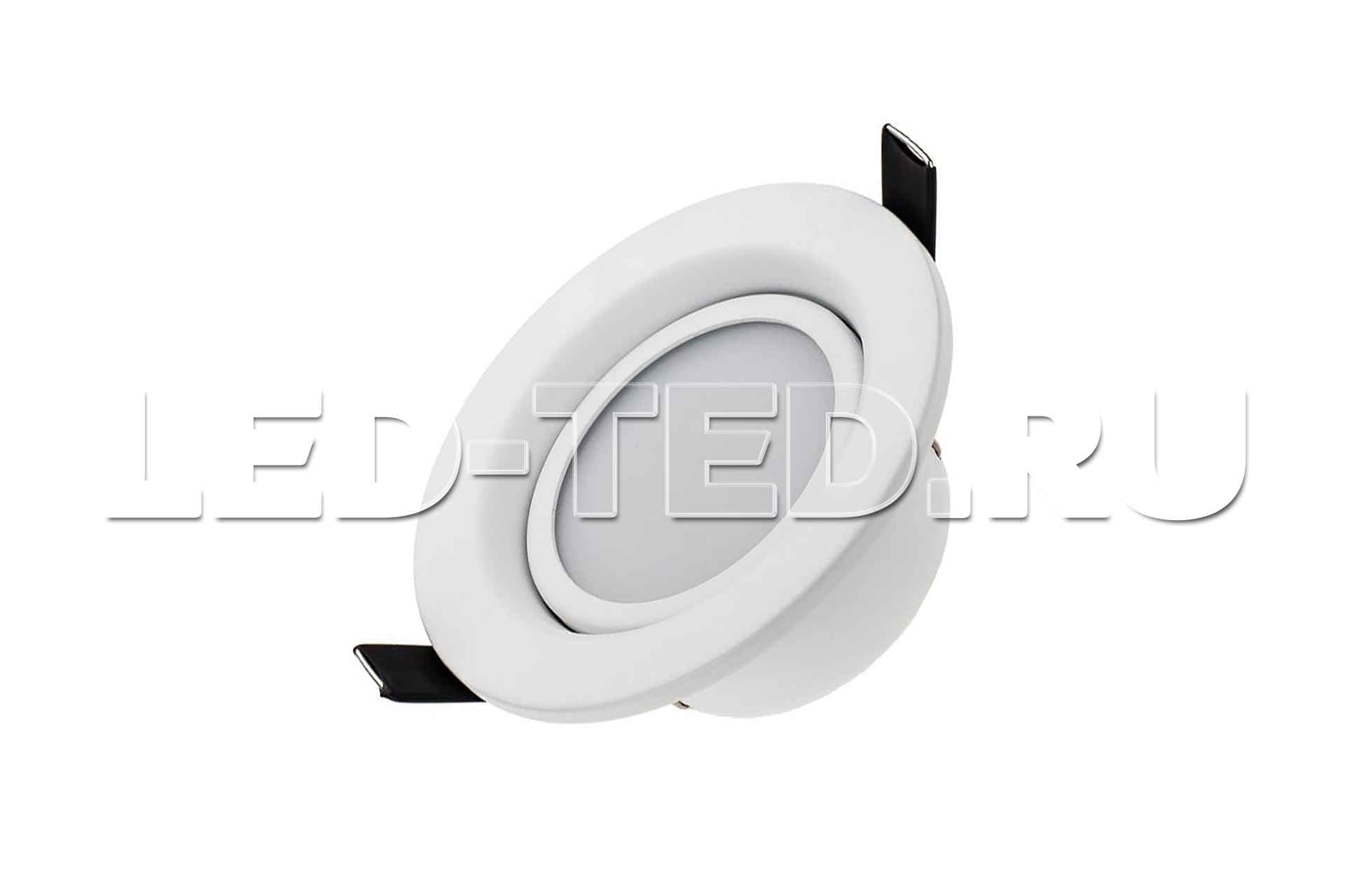 Встраиваемый круглый светильник 5Вт. Цвет свечения ТЕПЛЫЙ БЕЛЫЙ 3000K. Алюминиевый белый корпус. Световой поток 250-300лм, угол 120°. Питание 180-240V/AC, драйвер в комплекте (25V, 300mA). Размеры d102мм х H50мм, отверстие для установки 75мм