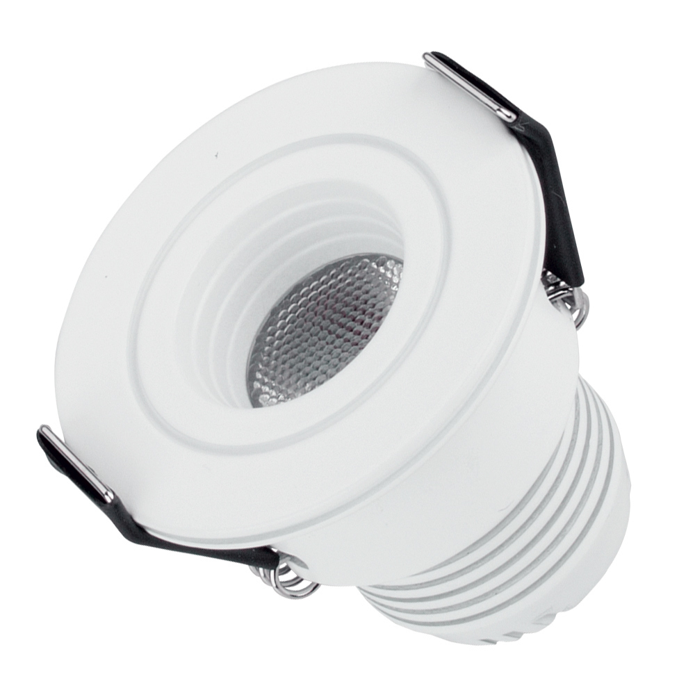 Врезной круглый мебельный светильник 3Вт, корпус белый алюминий. Цвет ДНЕВНОЙ БЕЛЫЙ 4000-4500K. Светодиод 1х3W CREE XPE. Св.поток 140-160лм, угол 30°. Питание 110-240VAC, 3Вт, 700mA 3-5V, драйвер в комплекте. Размеры d45x48 мм, врезное отверстие d39 мм.