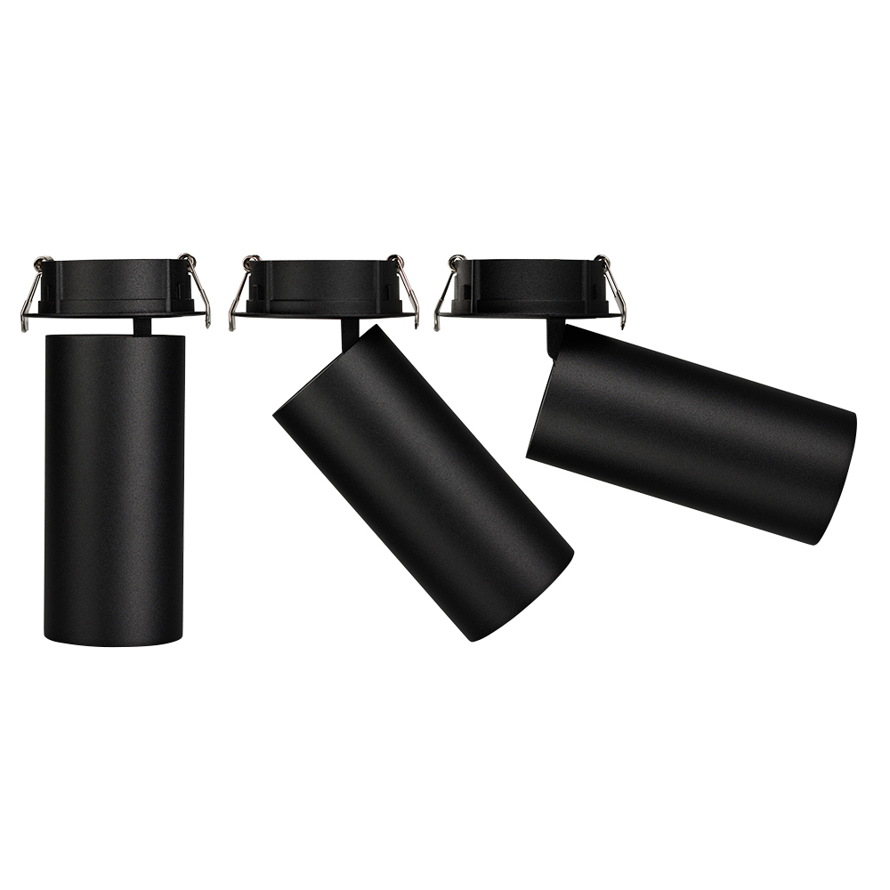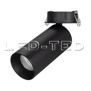 Встраиваемый откидной светильник 8Вт, черный круглый корпус, черная вставка, металл. Цвет свечения БЕЛЫЙ 5000K, св.поток 570лм, CRI(Ra)>80, угол 40°. Размер DxH ?65x165мм, встроенный драйвер PRI:220-240VAC, SEC:DC 200mA 30-43V, 8Вт. Установка в отверстие ?75мм.