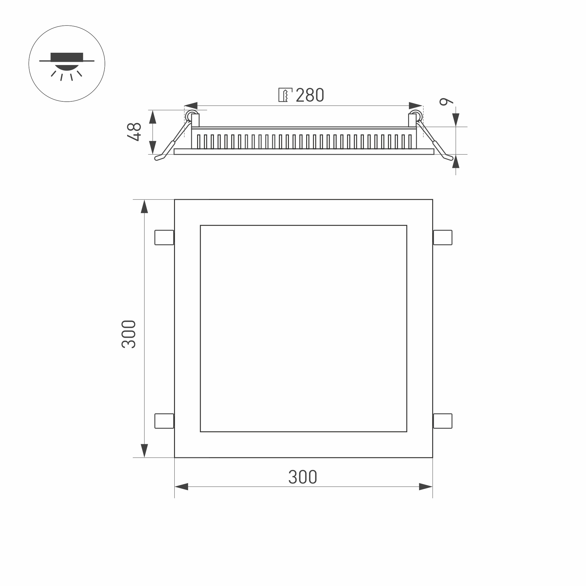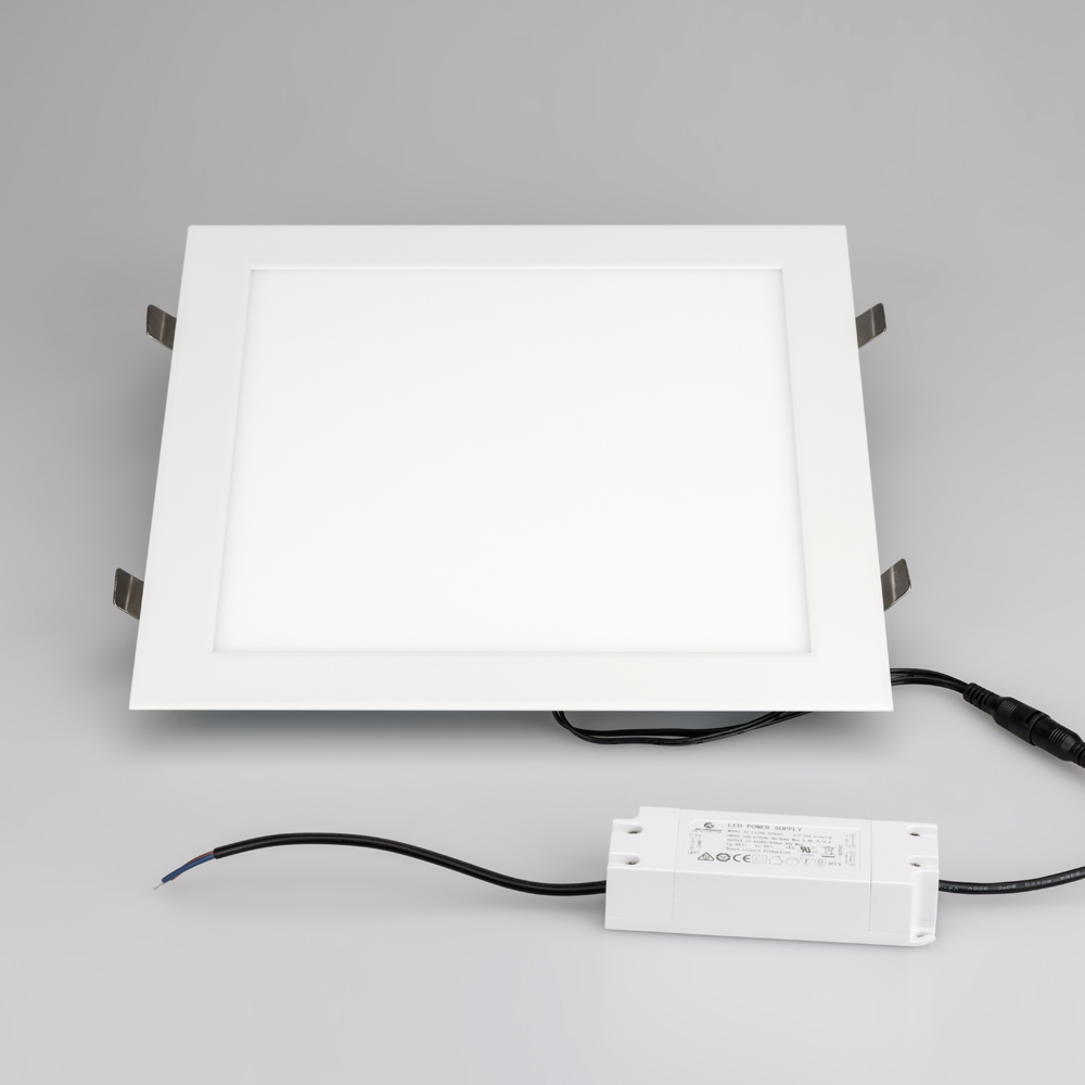 Тонкая панель 25Вт, белый квадратный корпус. Цвет БЕЛЫЙ 6000K, св.поток 2000лм, CRI(Ra)>80, угол 120°. Размер 300x300x9 мм, установка в отверстие 280x280мм. Питание AC 220-240V, 25Вт, драйвер в комплекте (DC600mA, 30-40V).