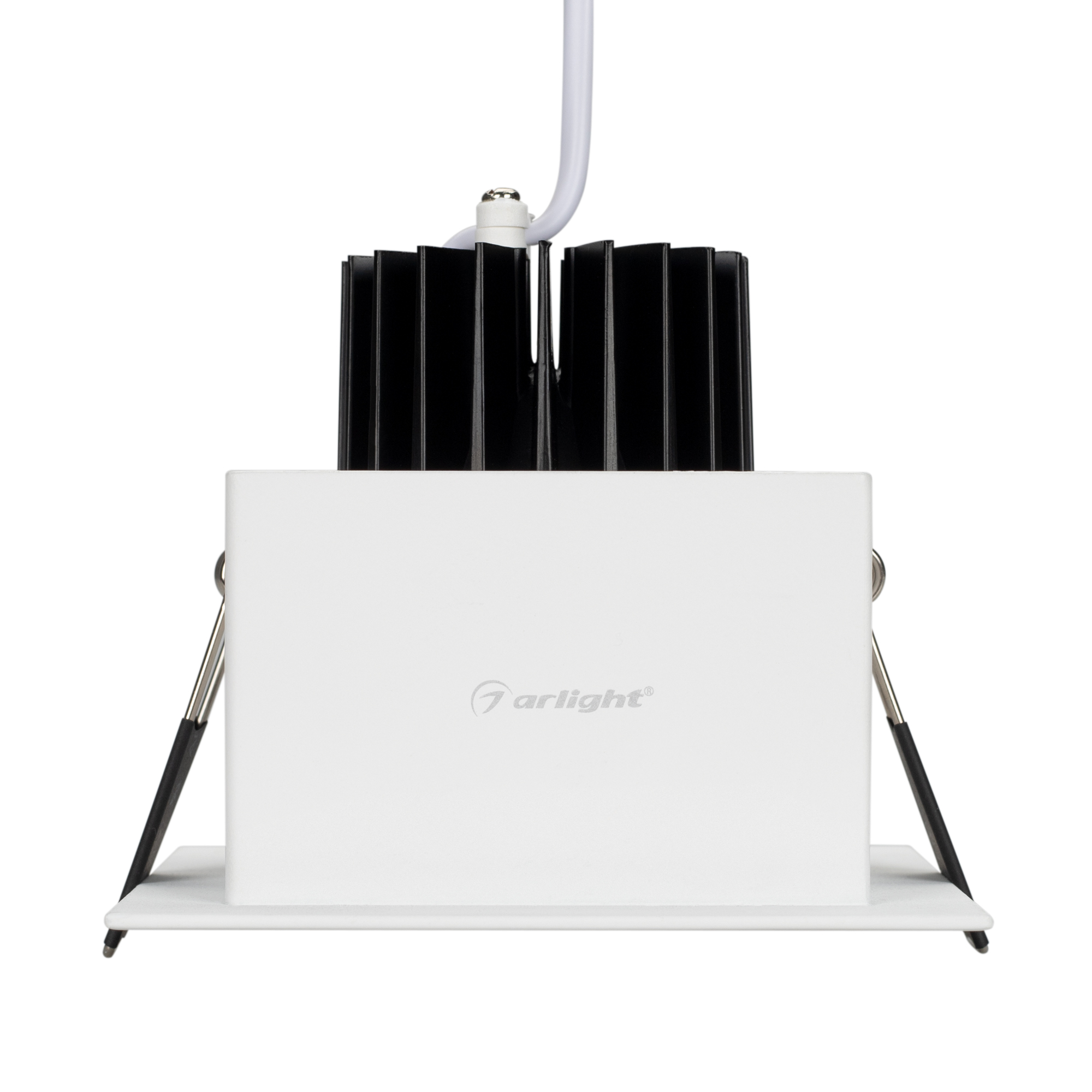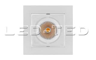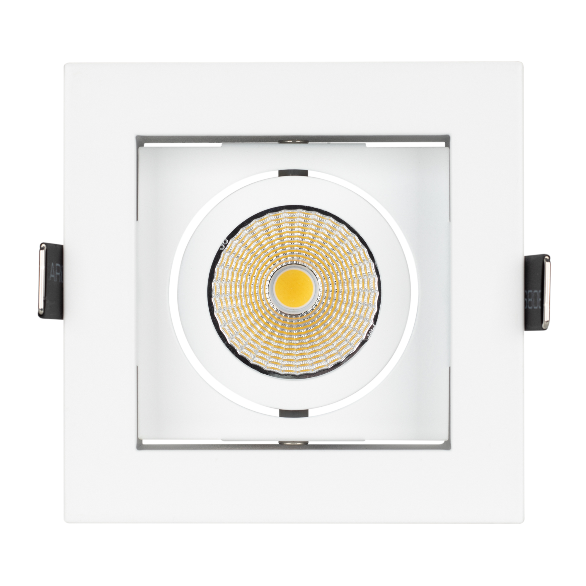 Встраиваемый карданный светильник. Угол 38° / 9Вт / БЕЛЫЙ 6000K / 680лм, CRI>80. Корпус из белого алюминия. Питание AC180-240V, 9Вт, в комплекте драйвер 200mA 30-45V. Размеры LxWxH: 102х102x85мм, отверстие для установки 85x85мм.