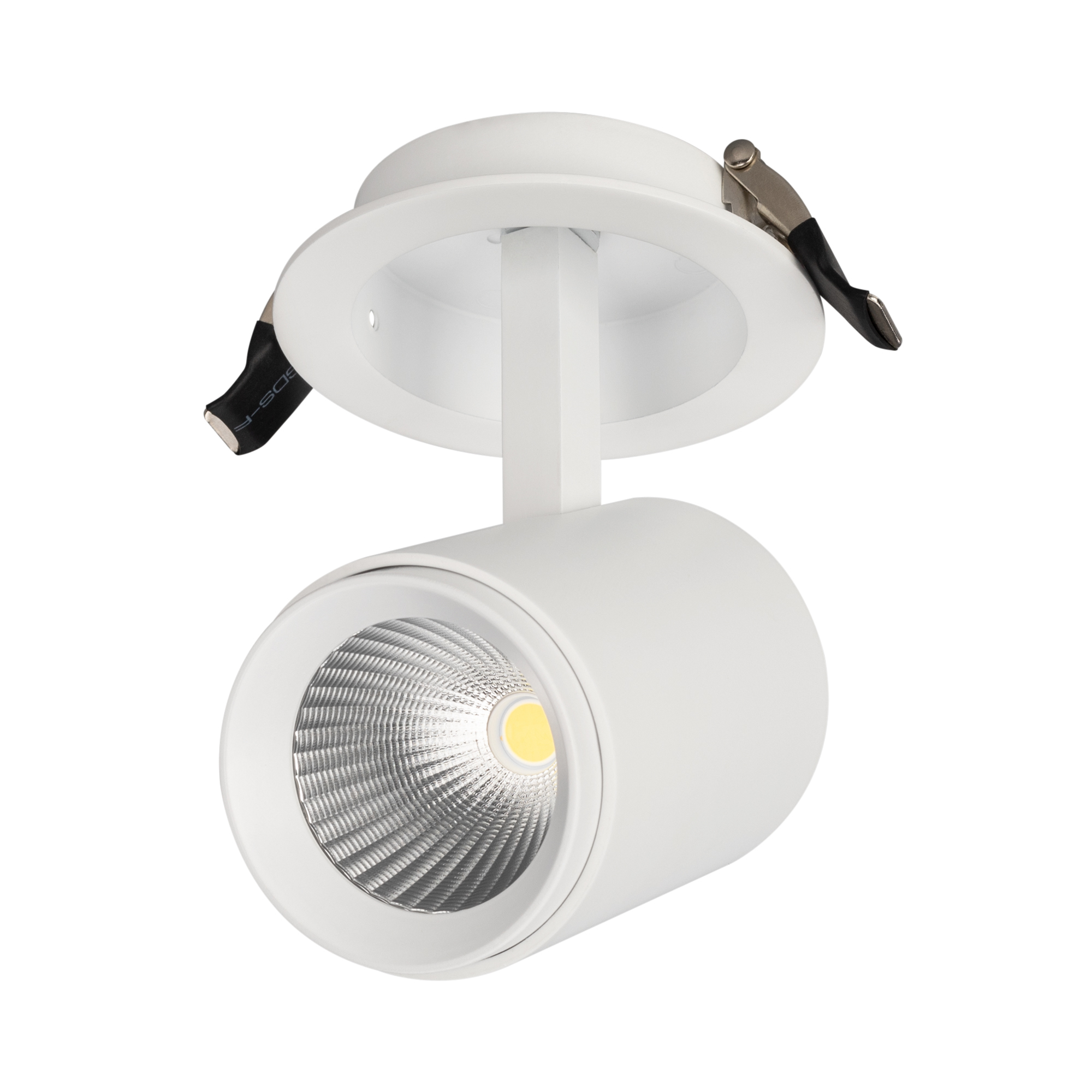 Встраиваемый поворотный светильник для потолка. Светодиод CREE 9W, цвет БЕЛЫЙ 6000K, св.поток 740-813лм, угол 25°, RA>80. Корпус белый. Мощность 9Вт, питание AC110-240V. Максимальные габариты LxWxH 115x90x115мм. Установка в отверстие 80мм. Драйвер в комплекте (20-40V 220mA).