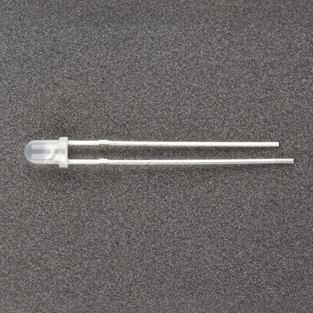Выводной светодиод круглый, d=3мм, белая матовая линза. Цвет свечения желтый (585 нм). Угол 30-40°. Сила света Iv=2000 мкд при If=20мА. VF=2-2,5 В.