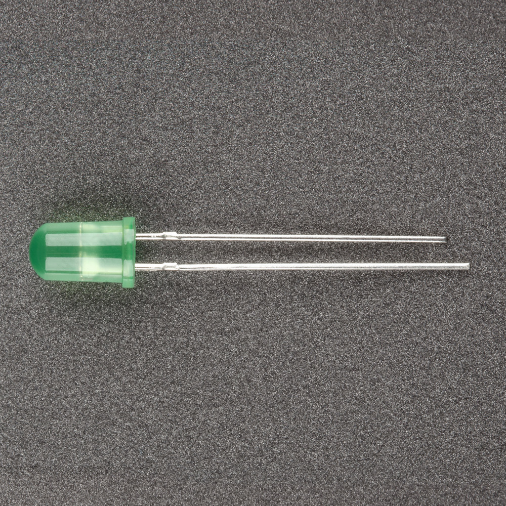 5мм мигающий зелёный (зелёная диффузная линза) 525nm, 1000-2000mcd, угол 40 градусов