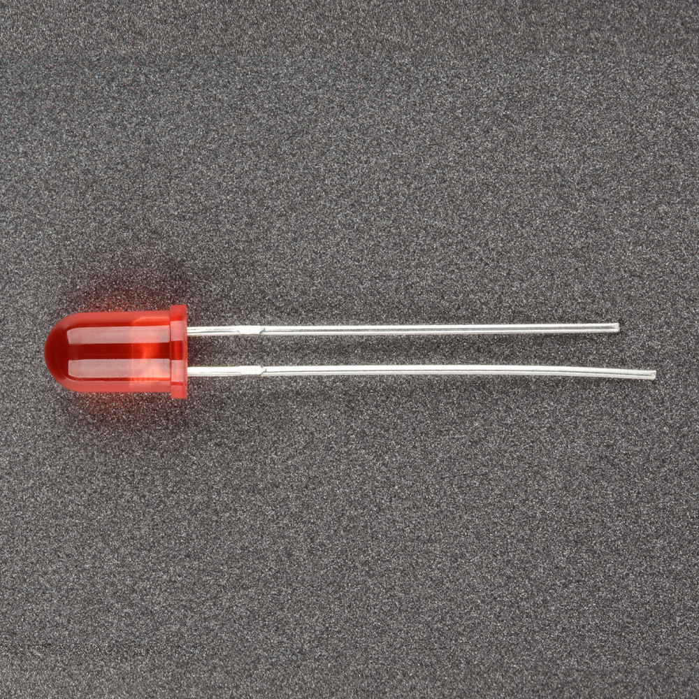 Выводной светодиод, круглый, диффузная (красная) линза D=5мм. Цвет свечения КРАСНЫЙ 625-630нм, яркость IV=800-1000mcd при IF=20mA, VF(V)=1.8-2.3V. Угол 45°. Рекомендуемый постоянный рабочий максимальный ток 16-17mA