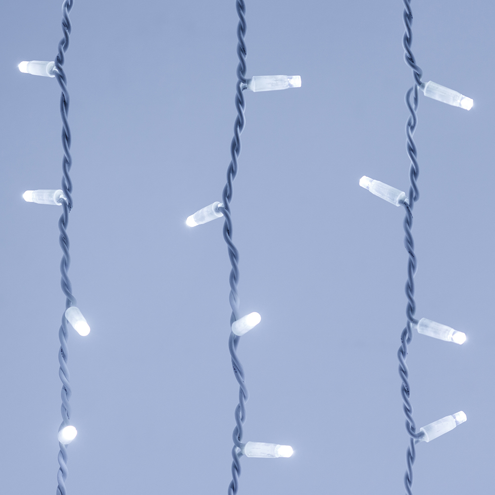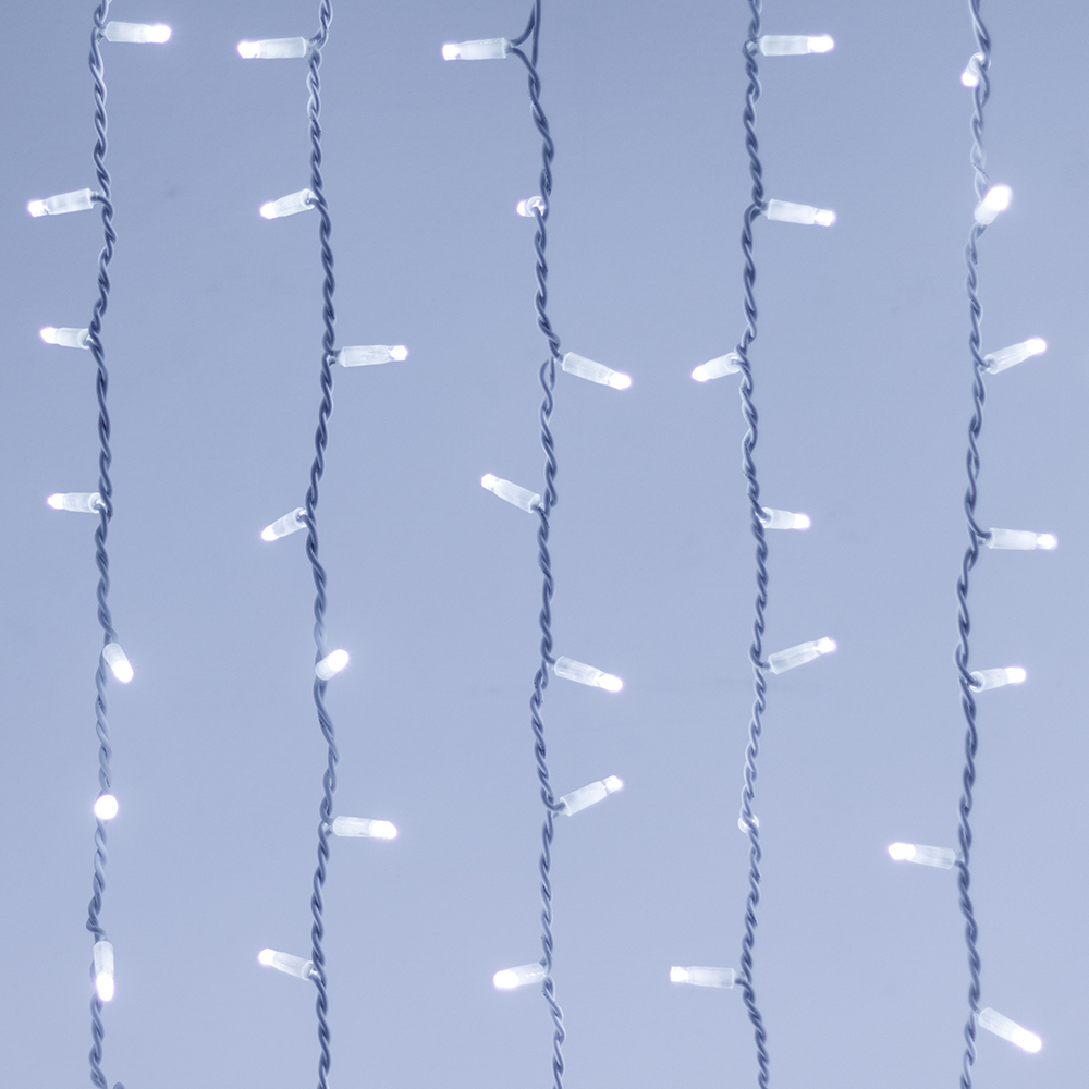 Светодиодная гирлянда "ЗАНАВЕС" серии PRO. Размер 2000x3000 мм (длина 2000 мм, высота 3000 мм). Цвет светодиодов БЕЛЫЙ. Постоянное свечение. Материал провода - белый резиновый (каучук). Диаметр провода 3.3 мм. 20 нитей длиной 3000 мм, ниспадающих вниз. Количество светодиодов 760 шт, 38 на каждой нити. Размер светодиодов 5 мм с защитным колпачком с вогнутой внутрь линзой. Напряжение питания AC 230V, потребляемая мощность 70W. Гирлянда укомплектована резиновым проводом питания с выпрямителем AC/DC. Степень
