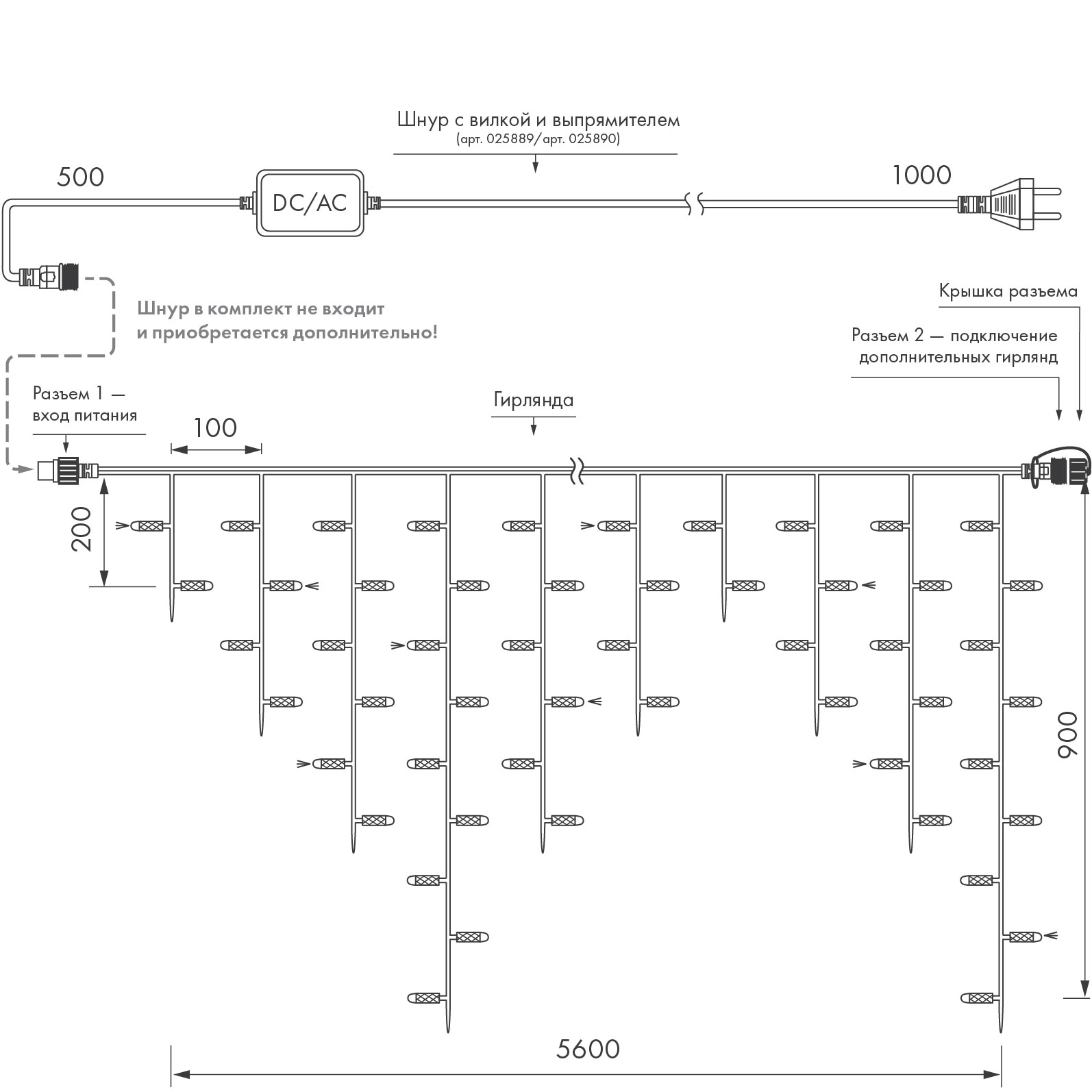 Светодиодная гирлянда "Бахрома" серии PRO. Размер 5600x900 (длина 5600 мм, максимальная высота 900 мм). Цвет светодиодов БЕЛЫЙ (6000К). Эффект мерцания (Белый цвет 6000К). 180-200 вспышек в минуту. Материал провода - чёрный РЕЗИНОВЫЙ (каучук). Диаметр провода 3.3 мм. 48 нитей длиной от 200 до 900 мм, ниспадающих вниз. Количество светодиодов 240 шт. Размер светодиодов 7 мм с выпуклым защитным колпачком молочно-белого цвета. Напряжение питания DC 230V, потребляемая мощность 15W, IP65. Для подключения одной гирлянды или нескольких гирлянд к сети необходимо приобрести провод питания с выпрямителем AC/DC. 034135 led-ted.ru