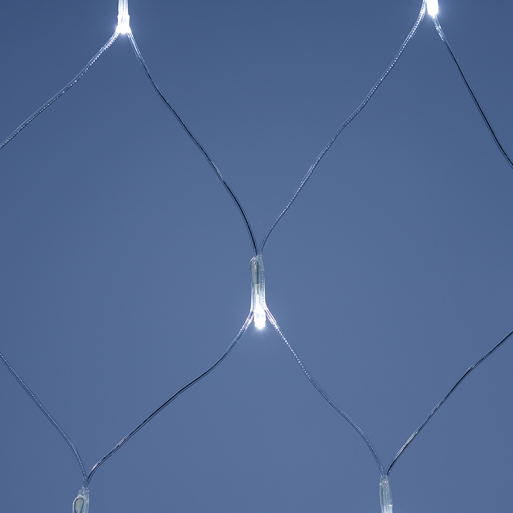 Светодиодная гирлянда "Сеть" серии Home. Размер 1800*1500 мм (длина 1800 мм, высота 1500 мм). Цвет светодиодов БЕЛЫЙ. Материал провода - прозрачный ПВХ. Диаметр провода 2 мм. Количество светодиодов 180 шт. Размер светодиодов 5 мм с вогнутой внутрь линзой. Напряжение питания AC 230V, потребляемая мощность 15W. Гирлянда укомплектована контроллером для смены режимов свечения и сетевой вилкой. Всего 8 встроенных динамических режимов. Степень защиты от воздействия окружающей среды IP20. Температурный режим раб