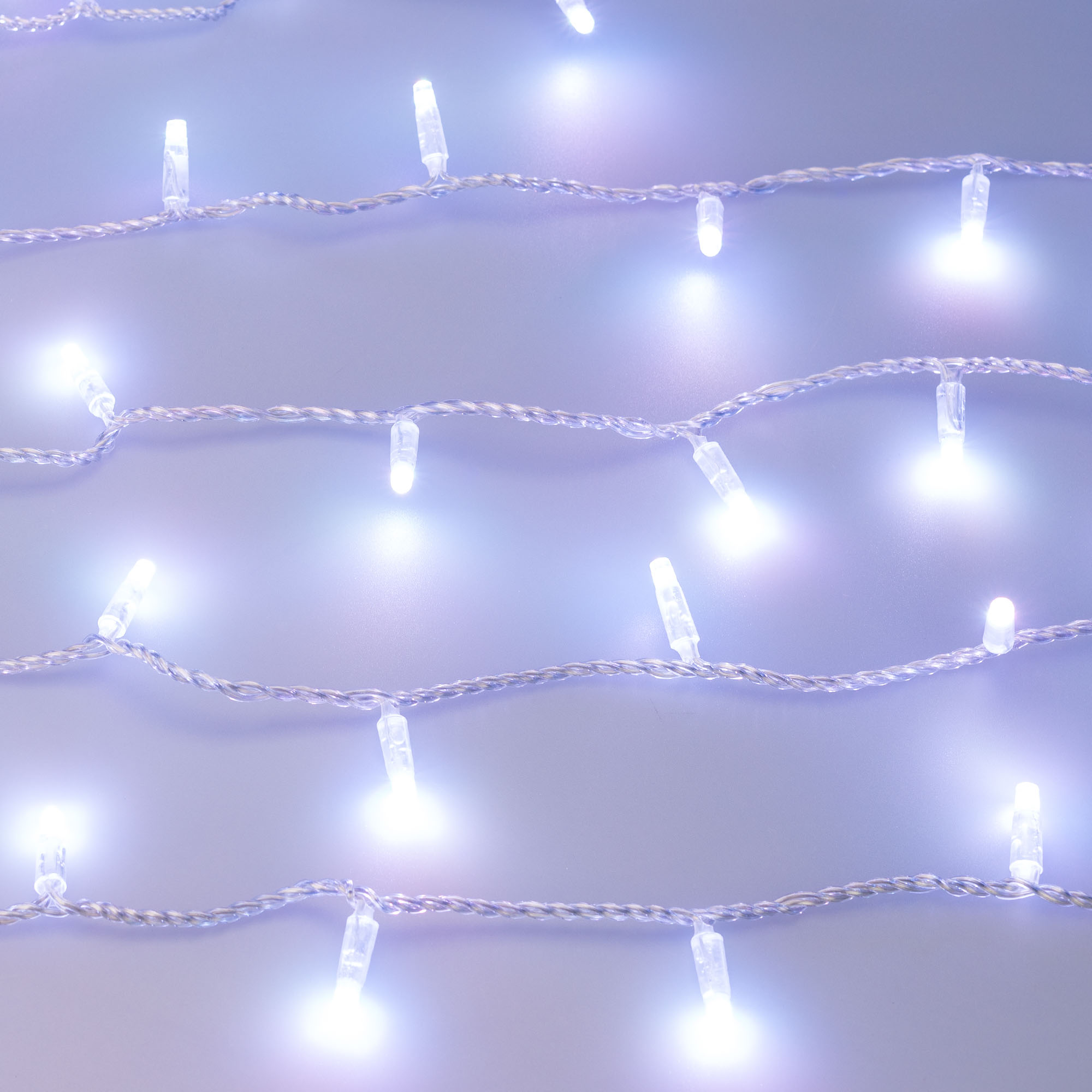 Светодиодная гирлянда "НИТЬ" серии Classic. Длина 10000 мм. Цвет светодиодов RGBW. Материал провода - прозрачный ПВХ. Диаметр провода 2.3 мм. Количество светодиодов 95 шт. Режим динамических эффектов, управление по протоколу DMX512. Размер светодиодов 7 мм с защитным прозрачным колпачком и вогнутой внутрь линзой, расстояние между светодиодами 100 мм. Напряжение питания DC 24V, потребляемая мощность 10W. Степень защиты от воздействия окружающей среды IP65. Для подключения необходим контроллер и DMX-декодер
