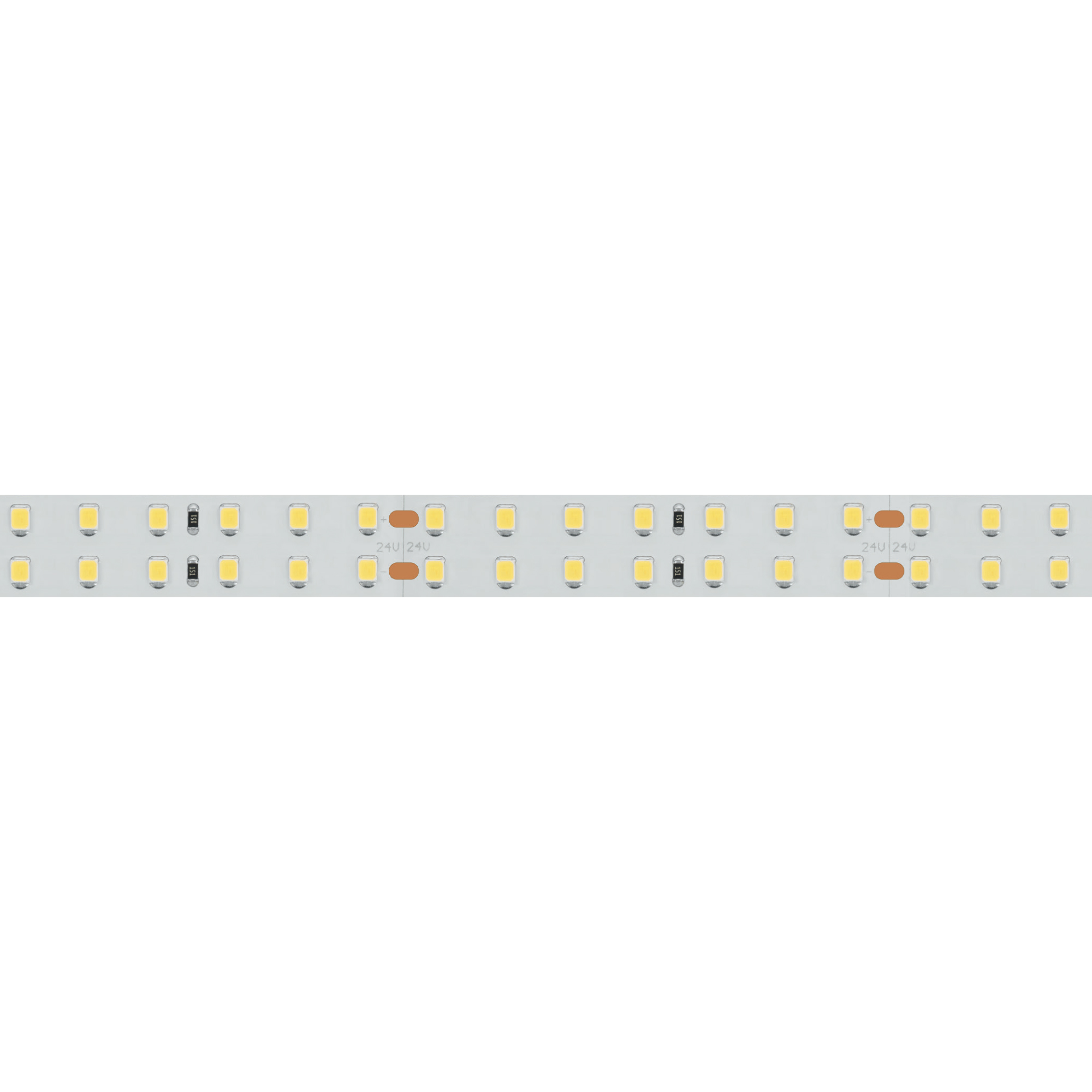 Гибкая лента LUX, светодиоды smd 2835, 196 шт/м (980шт на 5м), белая плата 15 мм, скотч 3М. Цвет ТЁПЛЫЙ 2600-2800K. Питание 24V, мощность 20 Вт/м (100 Вт на 5м), угол 120°, цветопередача CRI>85. Размеры 5000х15x1.5мм. Мин.отрезок 71.43мм, 14 светодиодов. Цена за 1м.