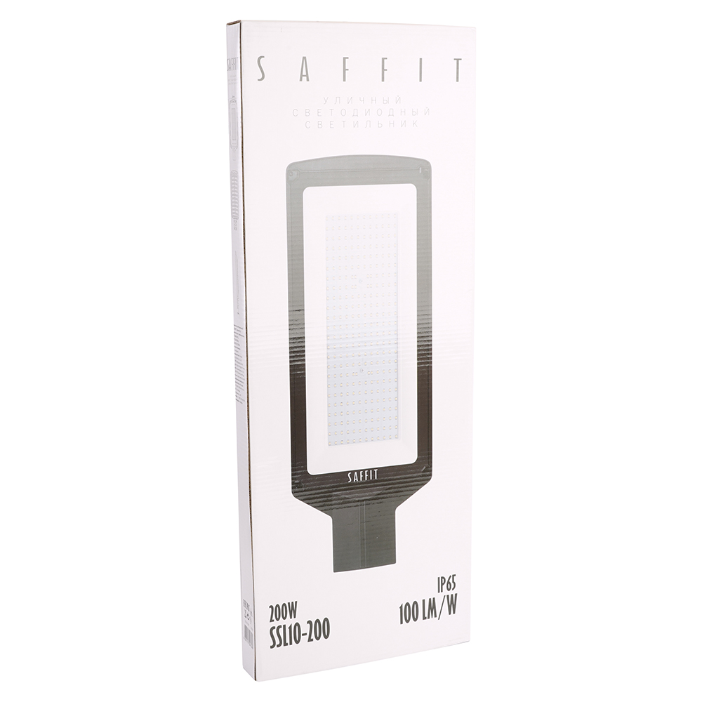 Уличный светильник консольный светодиодный, на столб (ДКУ) SAFFIT SSL10-200, 200W, 5000К (холодный белый), 230V/50Гц, 20000Lm, IP65, угол рассеивания 120°, 144LED*SMD2835 , класс защиты 1, раб.t -40°C - +45°C, цвет чёрный, корпус алюминий, стекло, 228*64*602мм