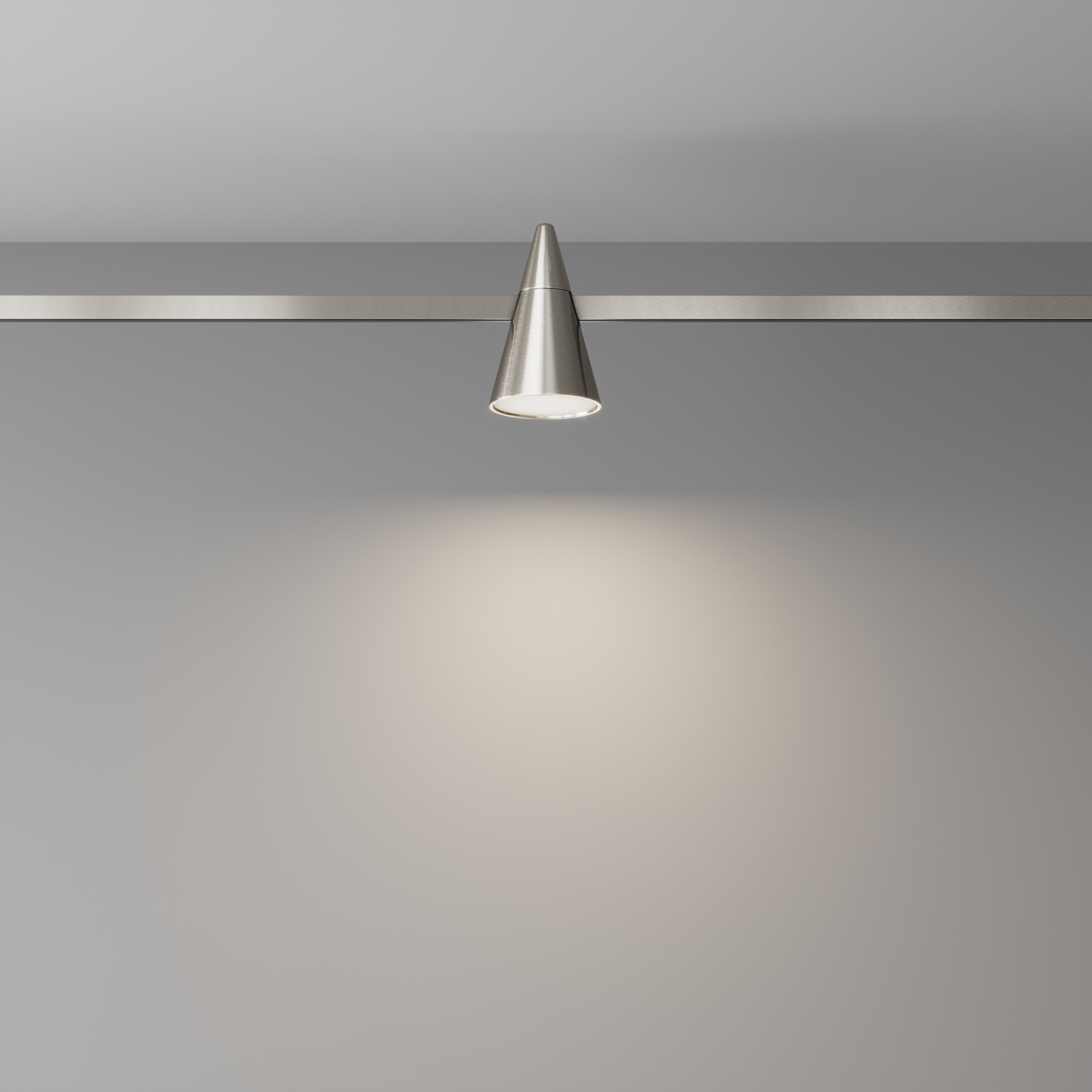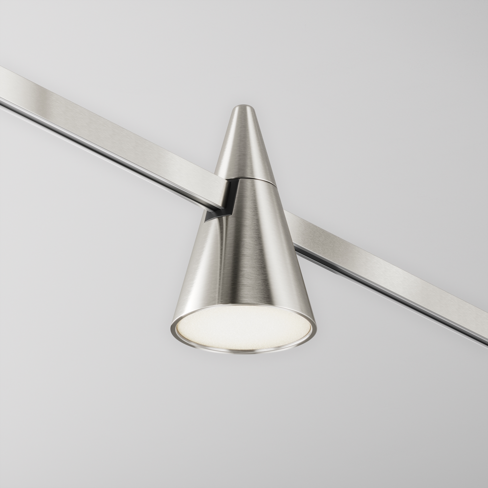 Арматура и плафоны конической формы из алюминия в двух цветах – черном и латунь. Опаловый рассеиватель. Долговечные энергосберегающие источники LED-света бренда Osram. Цветовая температура 3000К, угол рассеивания 120°, коэффициент цветопередачи >90. Крепление магнитами на шинопровод с возможностью легкого перемещения светильников вдоль шины. Функция диммирования в группе возможна только в сочетании с блоками DALI/0~10V.