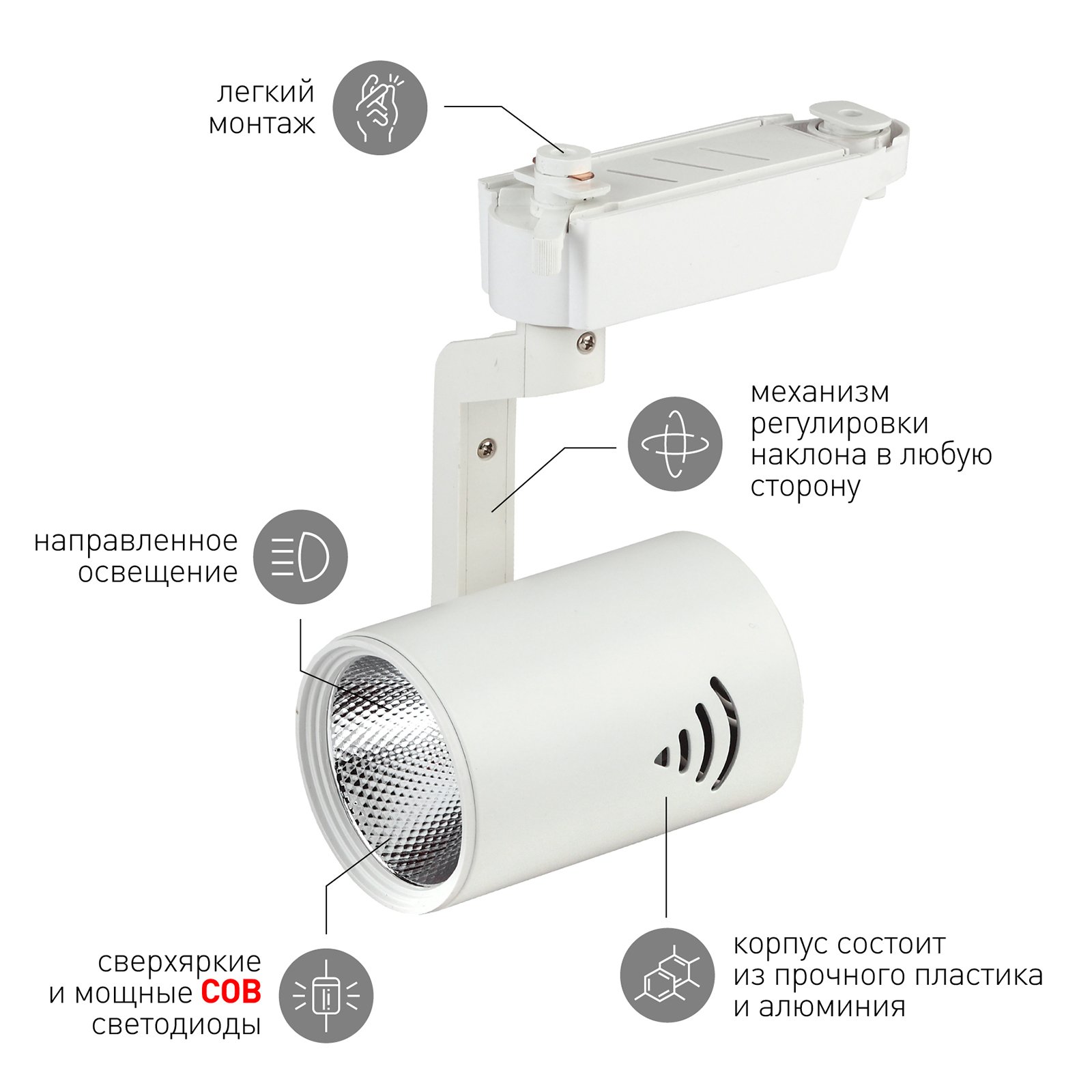 Трековый светодиодный светильник предназначенный для монтажа на шинопроводе