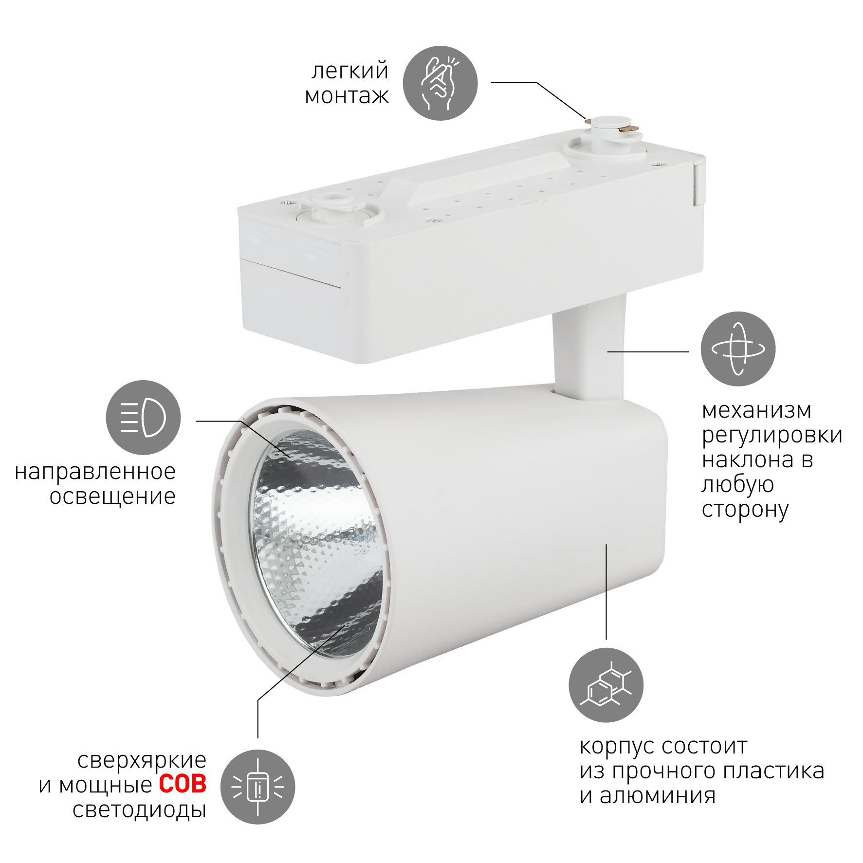 —Трековый светильник TR4-30 WH 30W белый COB 5055945587043