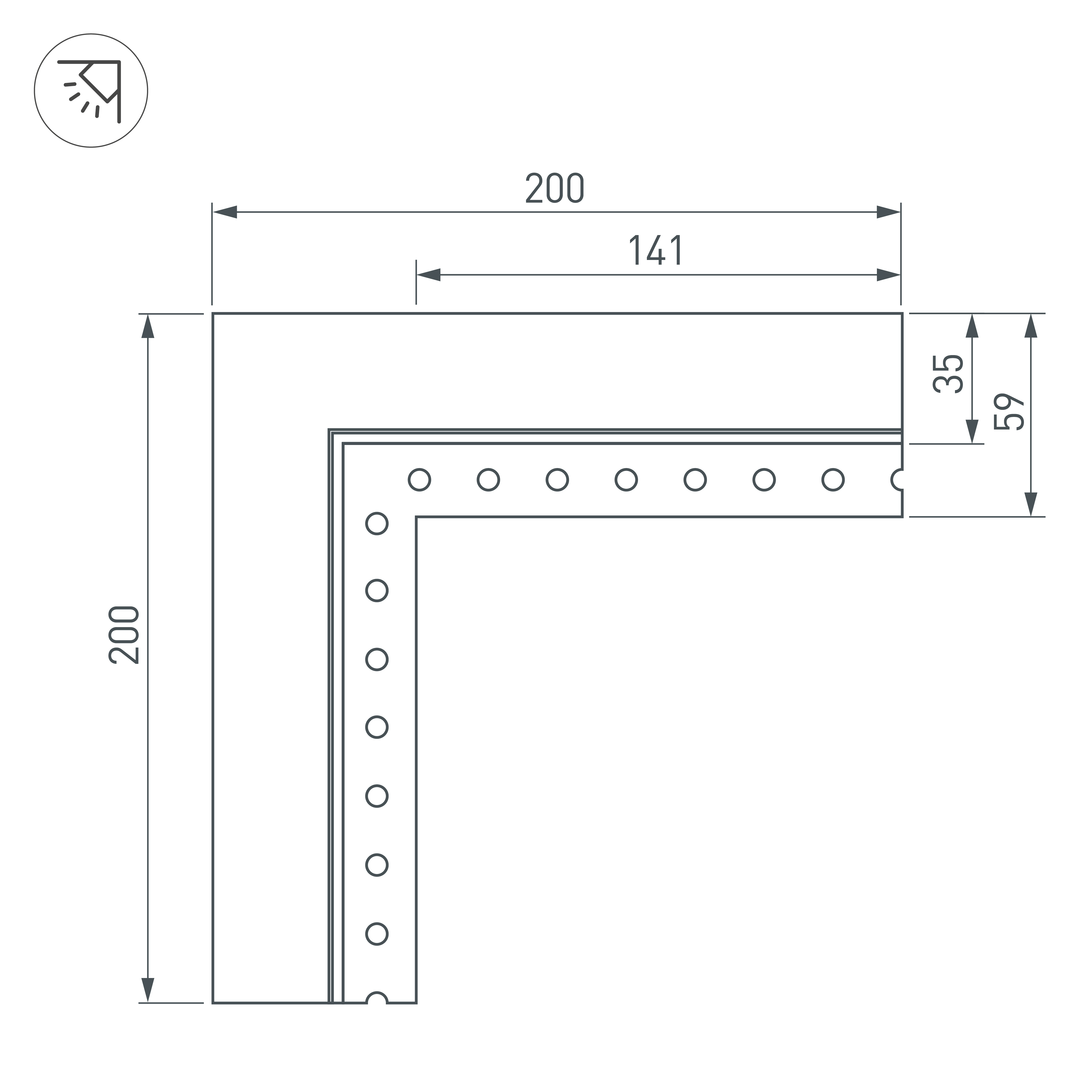 Угол в сборе, для профиля SL-LINIA32-FANTOM-EDGE. Свечение внутрь. В комплекте угол, соединители, винты, шестигранный ключ.